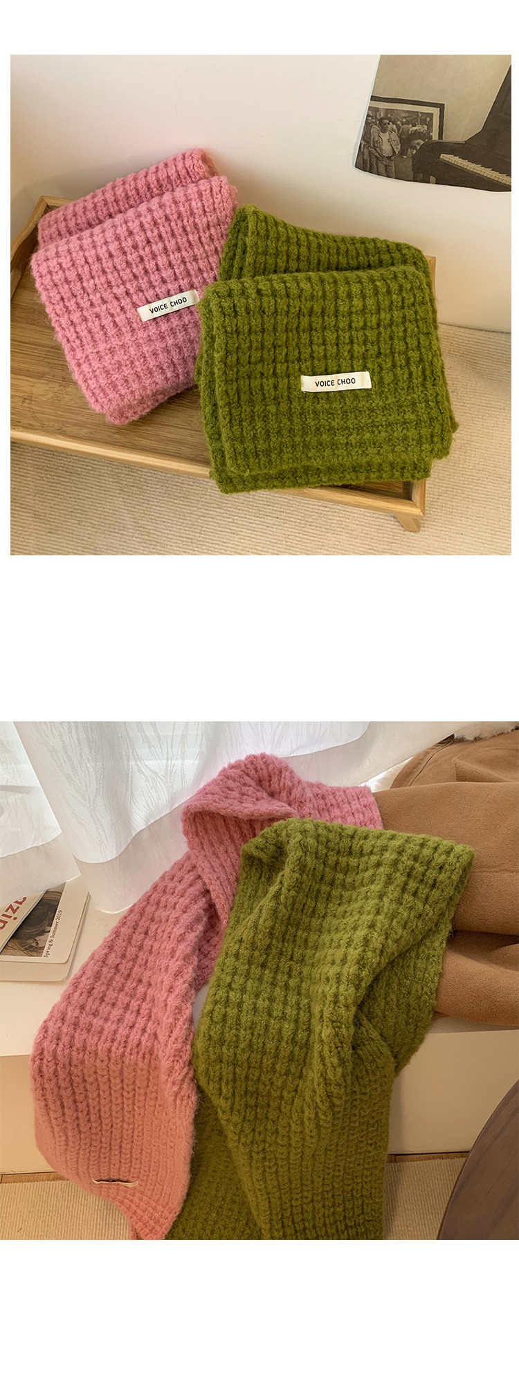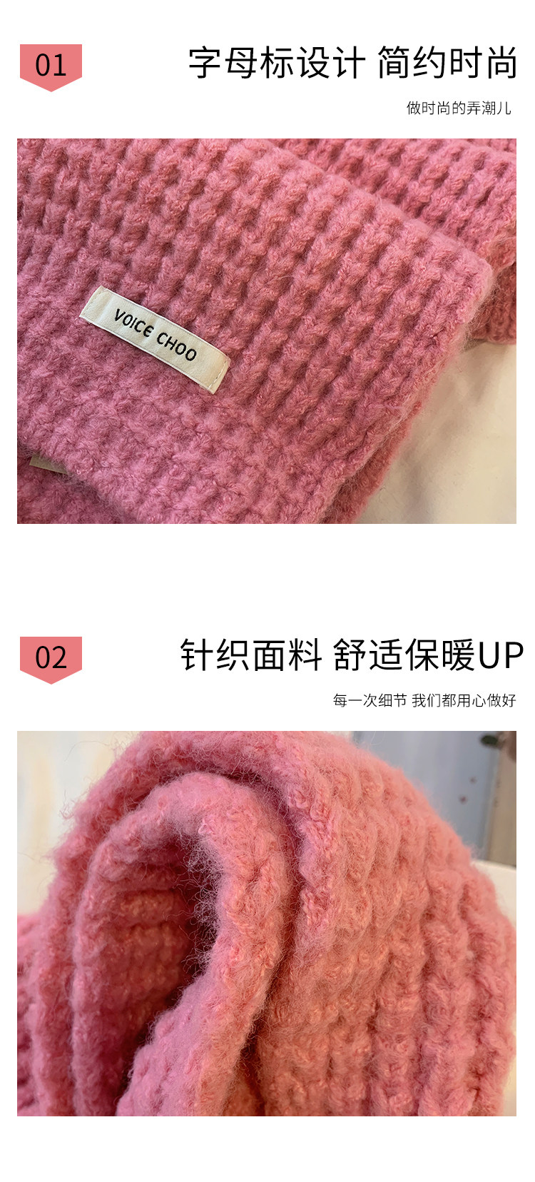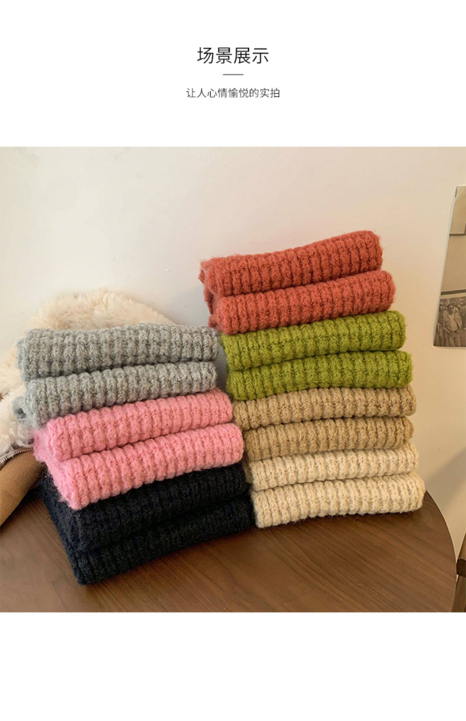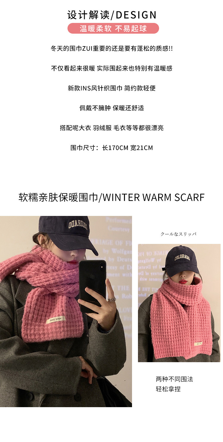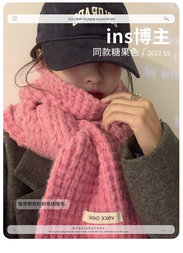 Розовый трикотажный зимний универсальный утепленный шарф, в корейском стиле, изысканный стиль