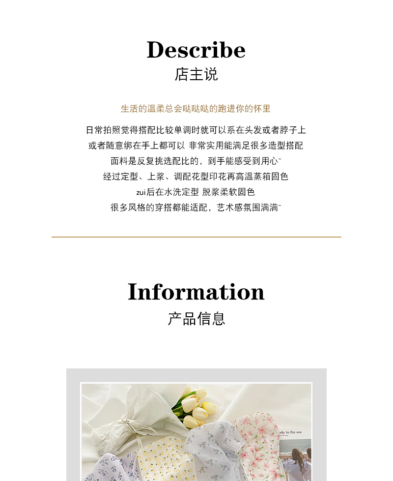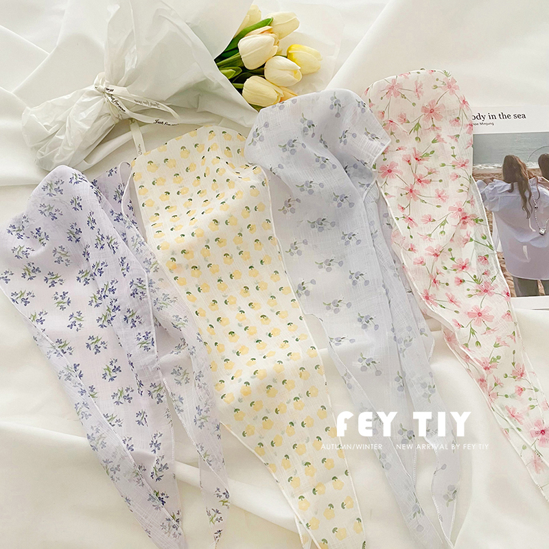 Летняя универсальная повязка на голову, шейный платок, французский стиль, цветочный принт
