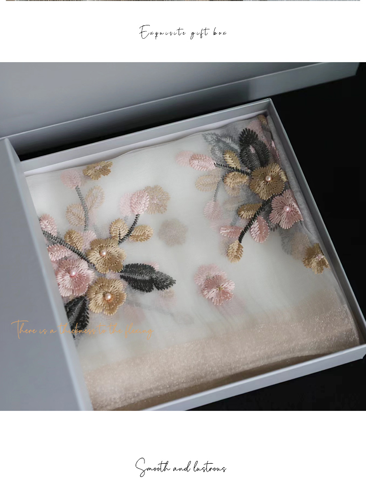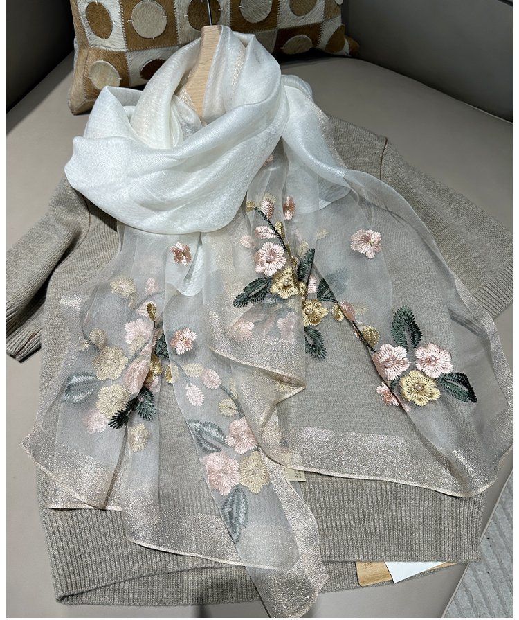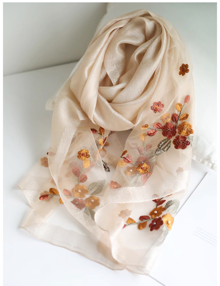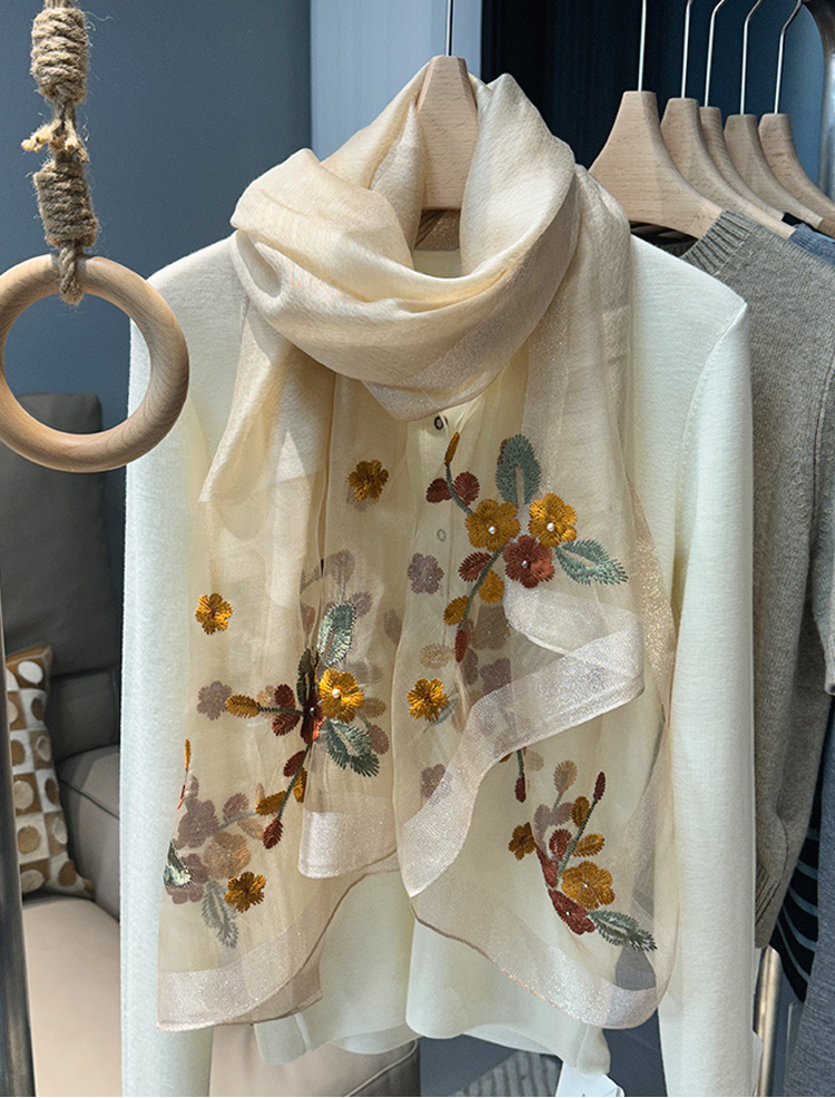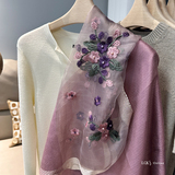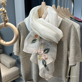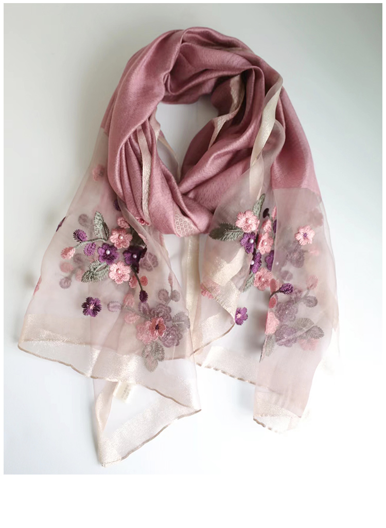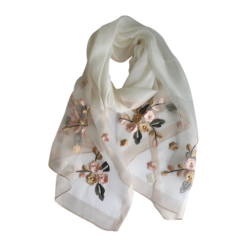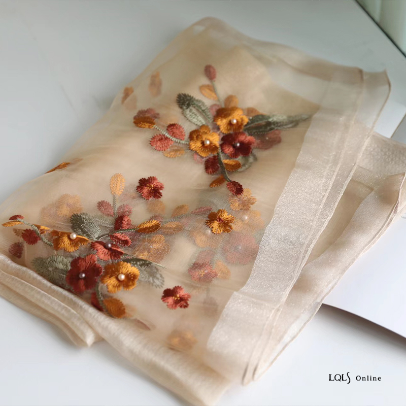 Модный шелковый тонкий шарф ручной работы, с вышивкой