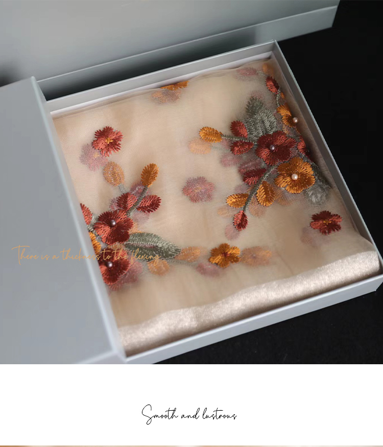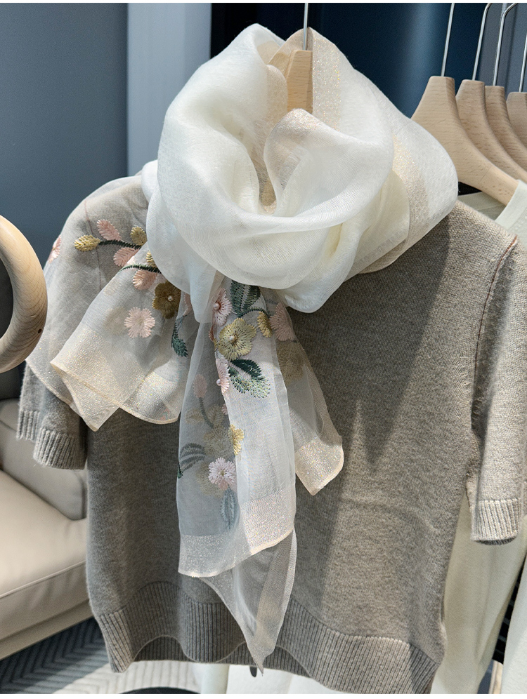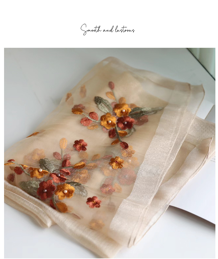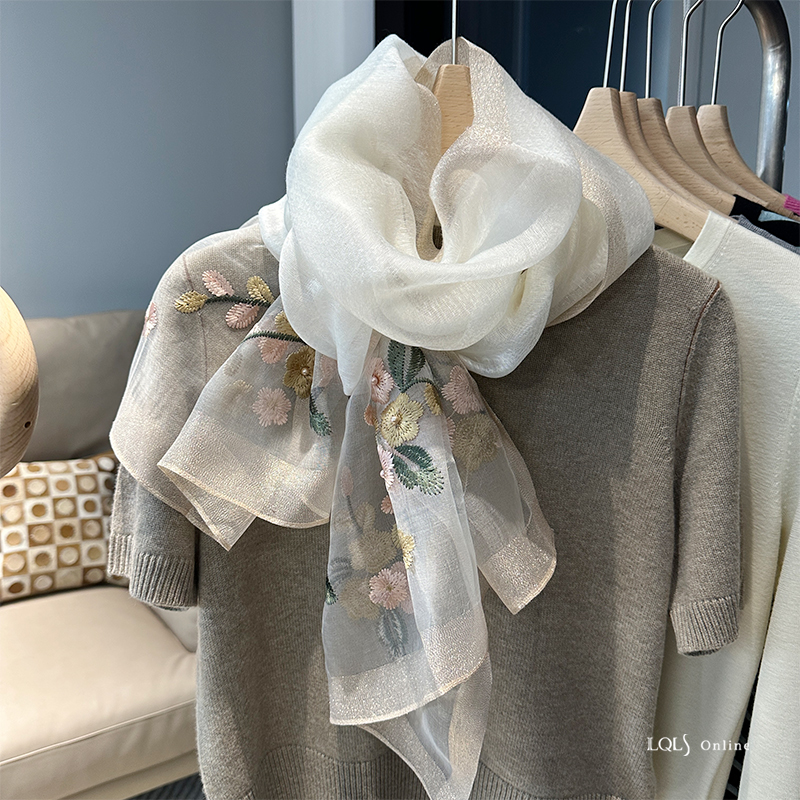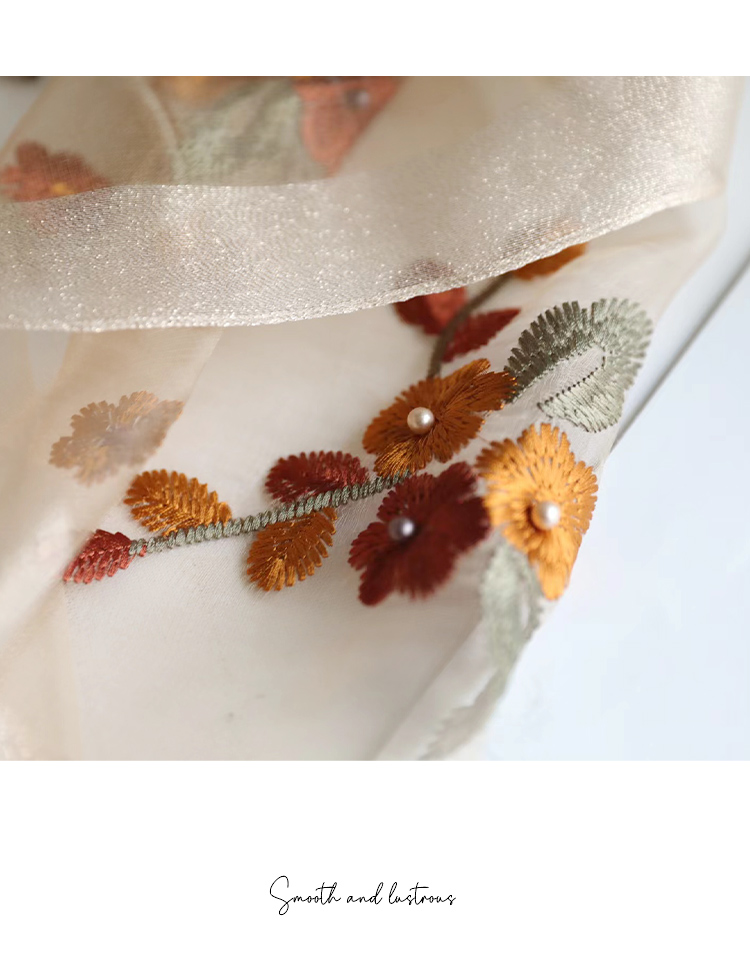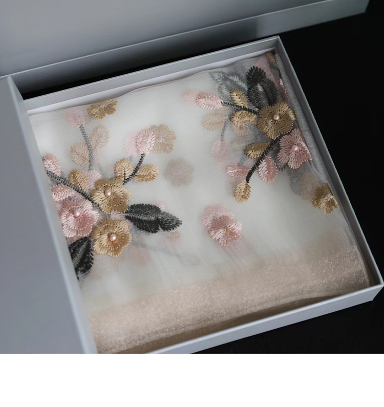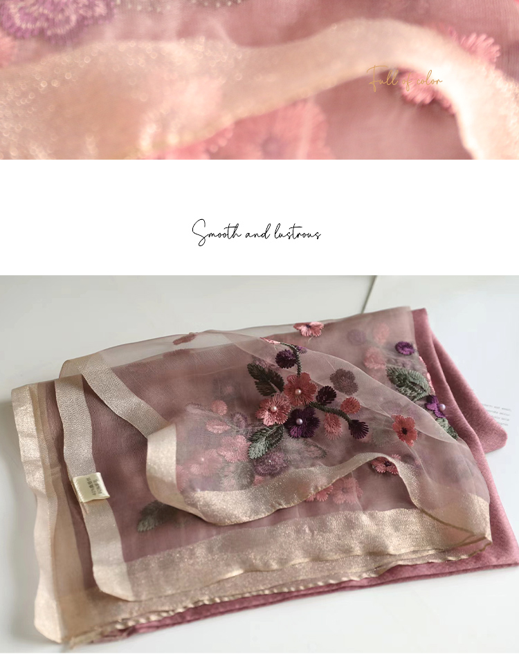 Модный шелковый тонкий шарф ручной работы, с вышивкой