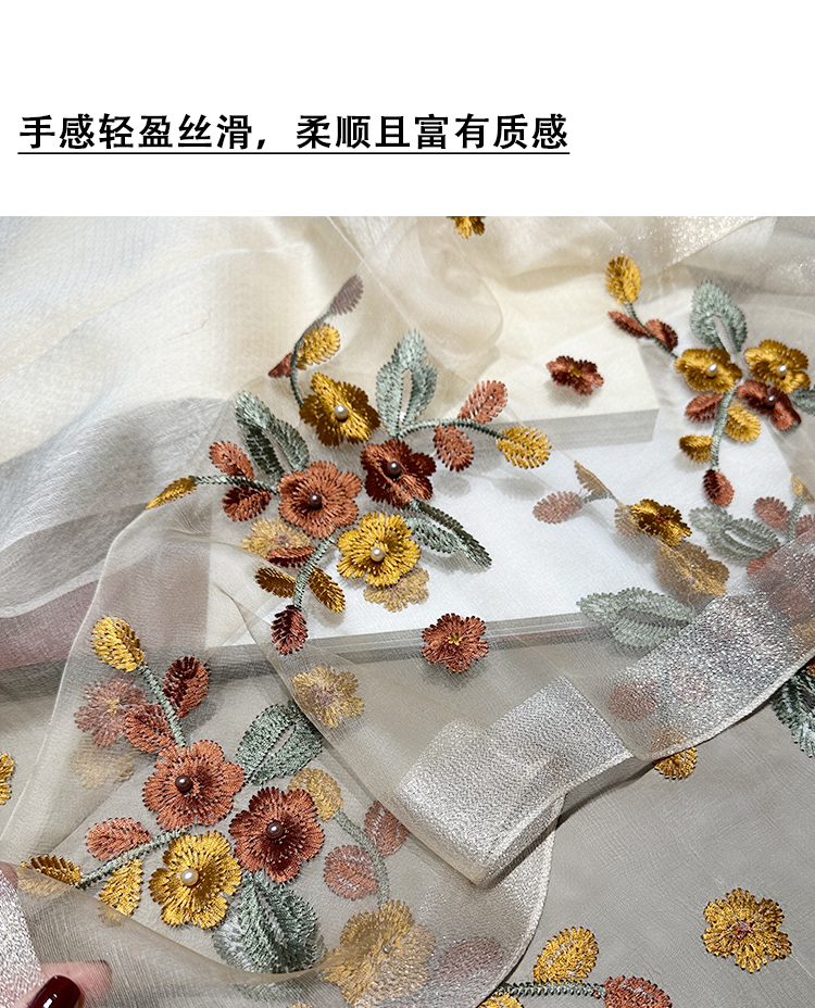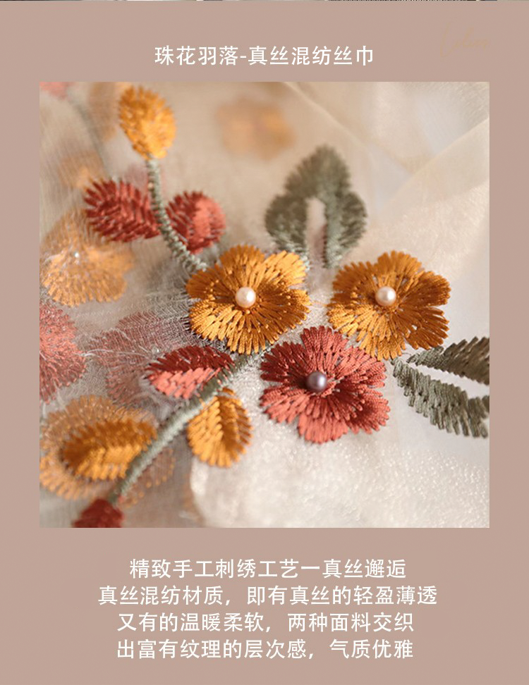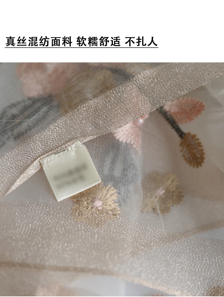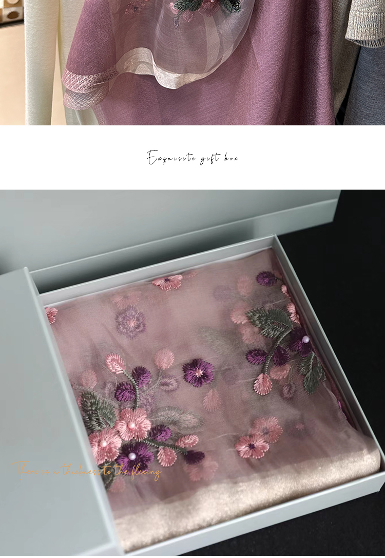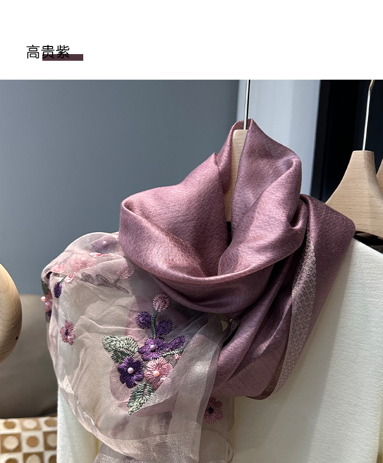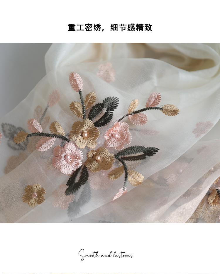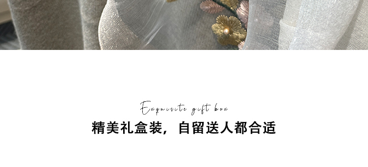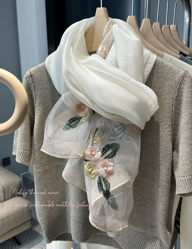 Модный шелковый тонкий шарф ручной работы, с вышивкой