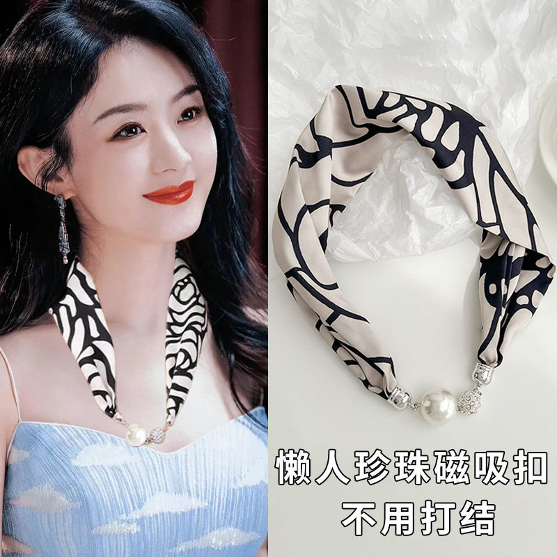 Ожерелье, тонкий шарф, повязка на голову, шейный платок из жемчуга, с защитой шеи