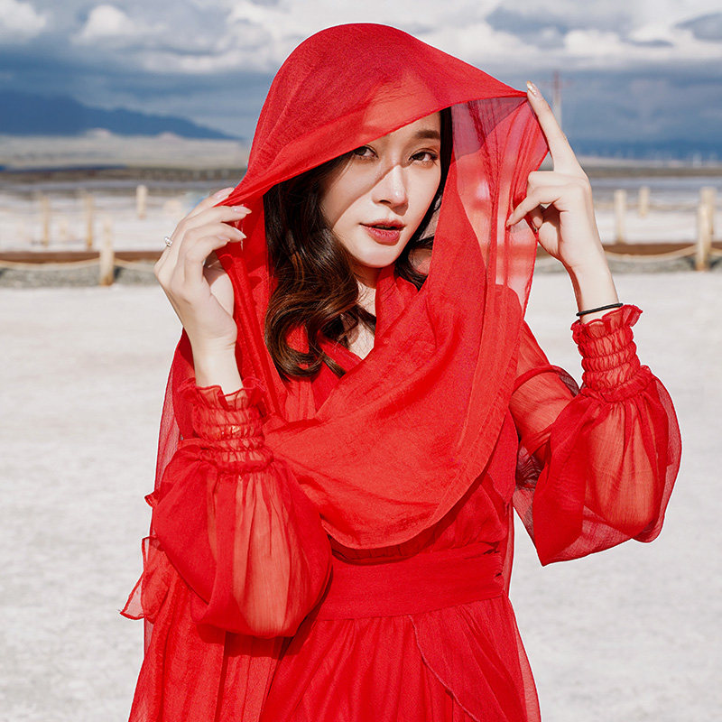 2024 Новый большой красный танцевальный шарф шелк шарф -шарф женский марлей