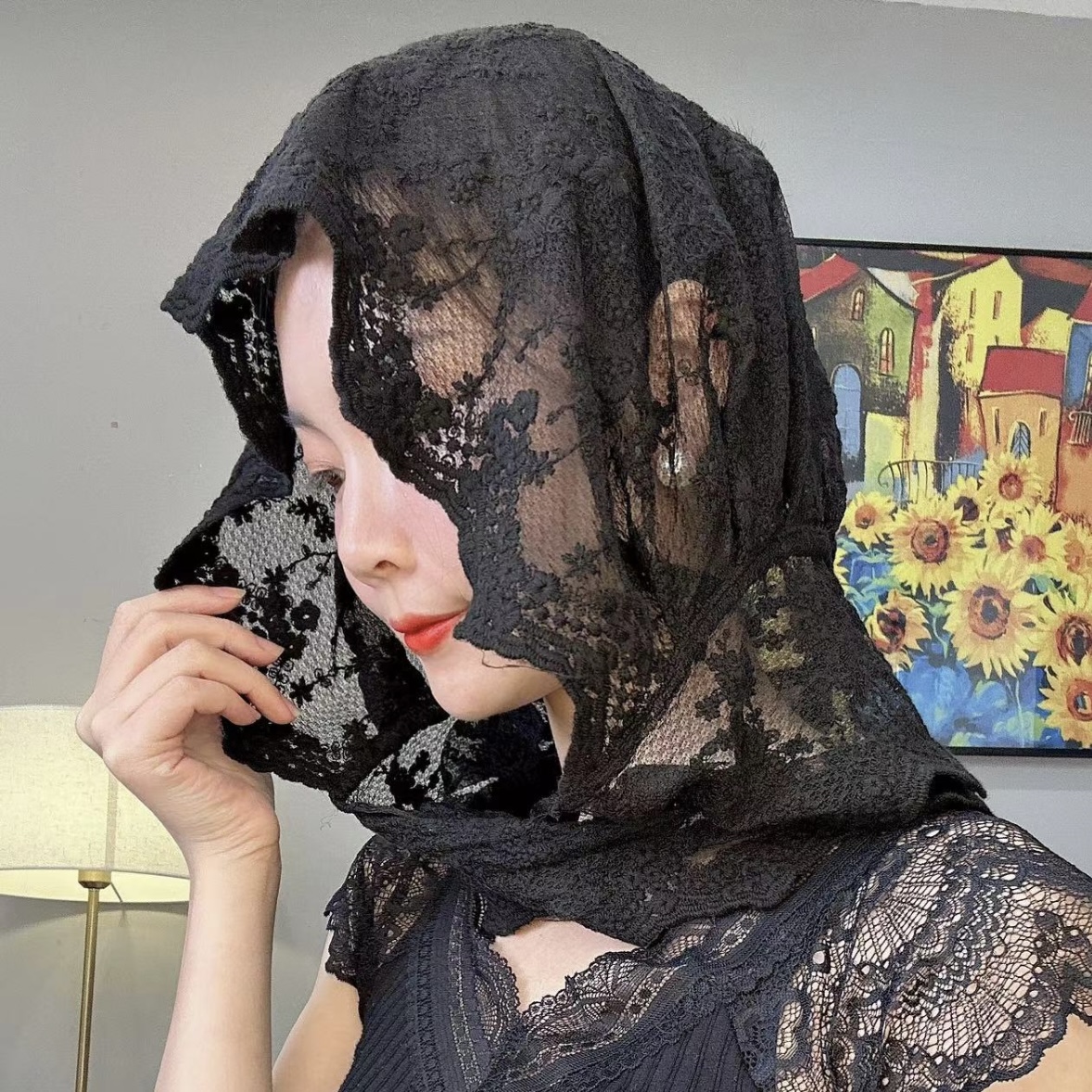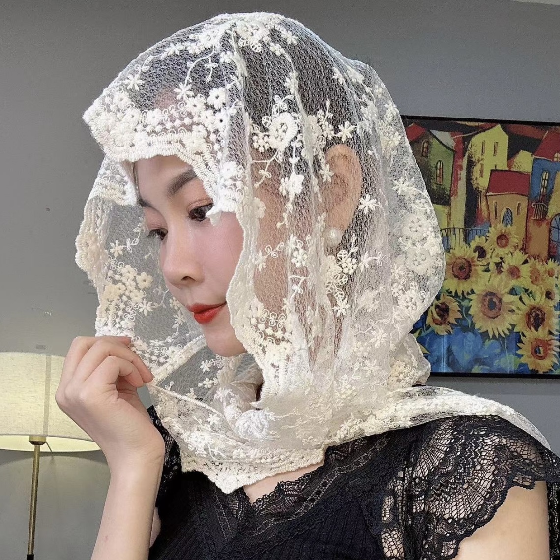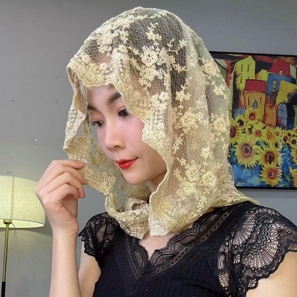 Кружевная тонкая модная шапка, летний универсальный шарф, защита от солнца, с вышивкой, популярно в интернете