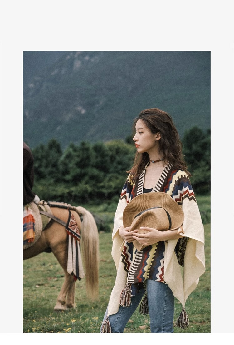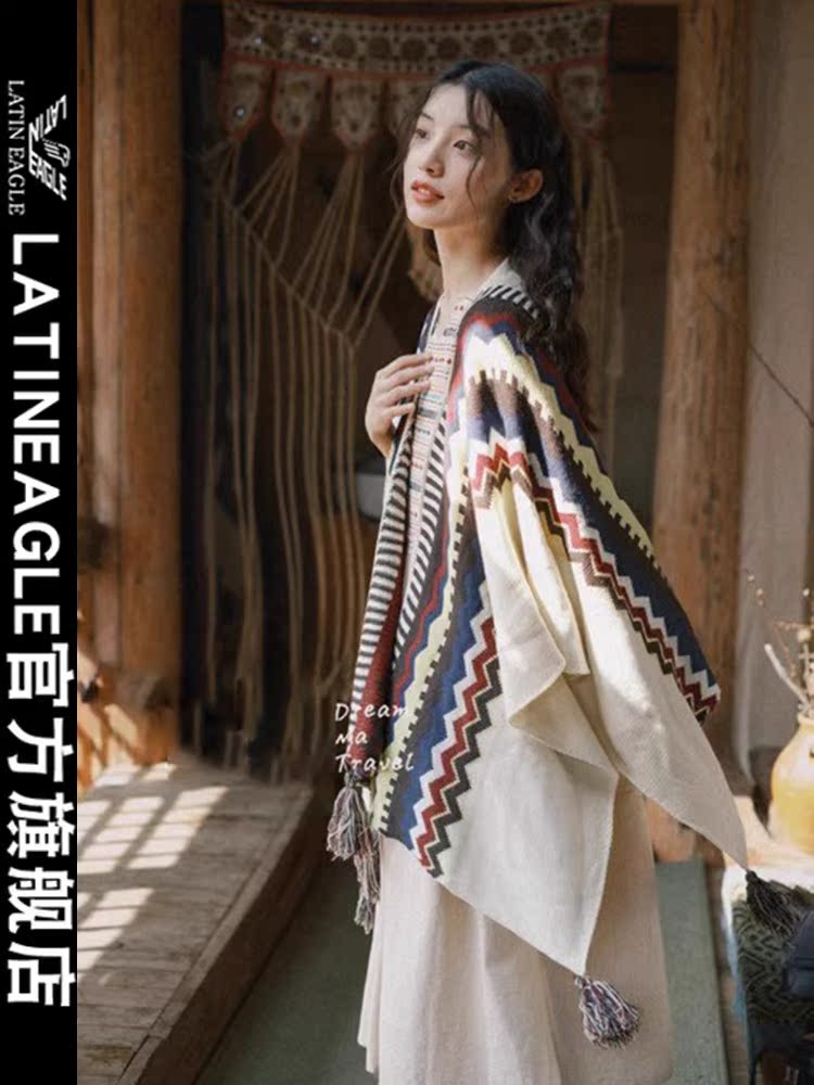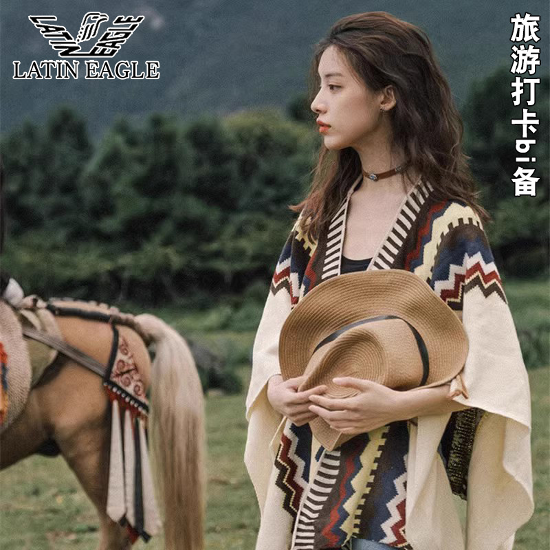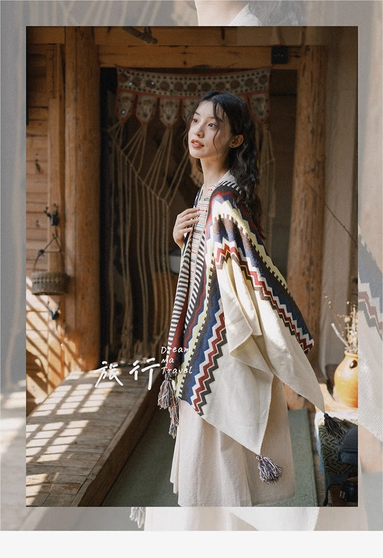 Трикотажная летняя накидка, этнический плащ из провинции Юньнань