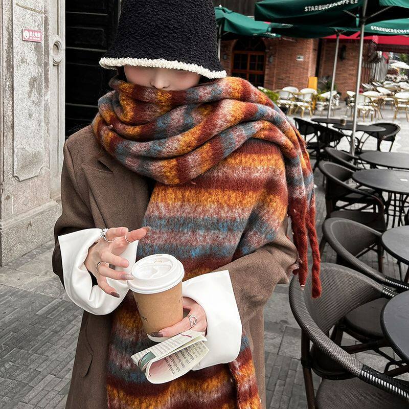 Ретро радужный зимний шарф, утепленная накидка для школьников, коллекция 2023