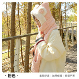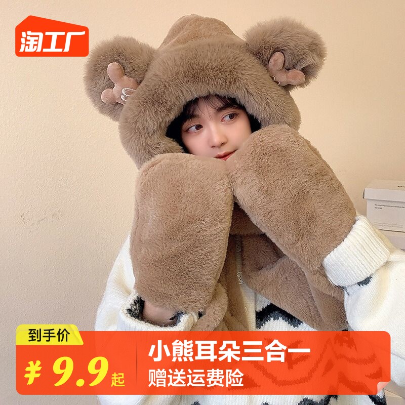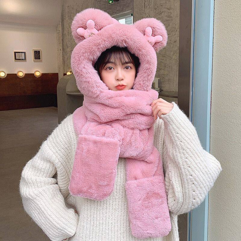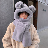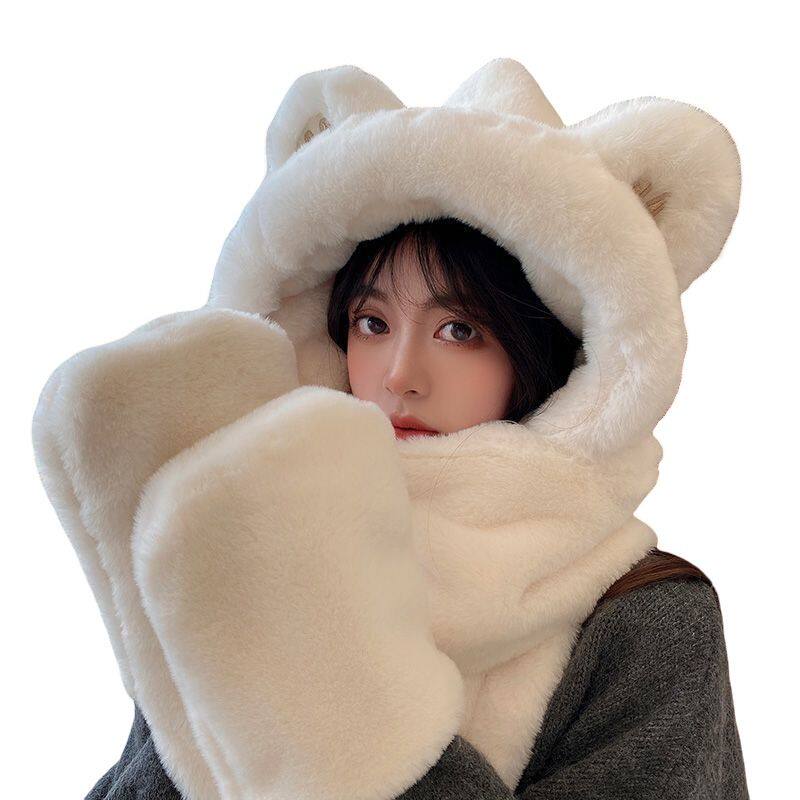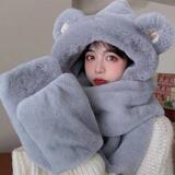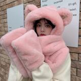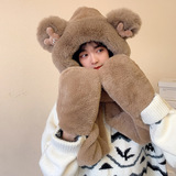 Шарф, удерживающая тепло милая зимняя шапка с капюшоном, бархатный комплект, перчатки, с медвежатами, 3 предмета