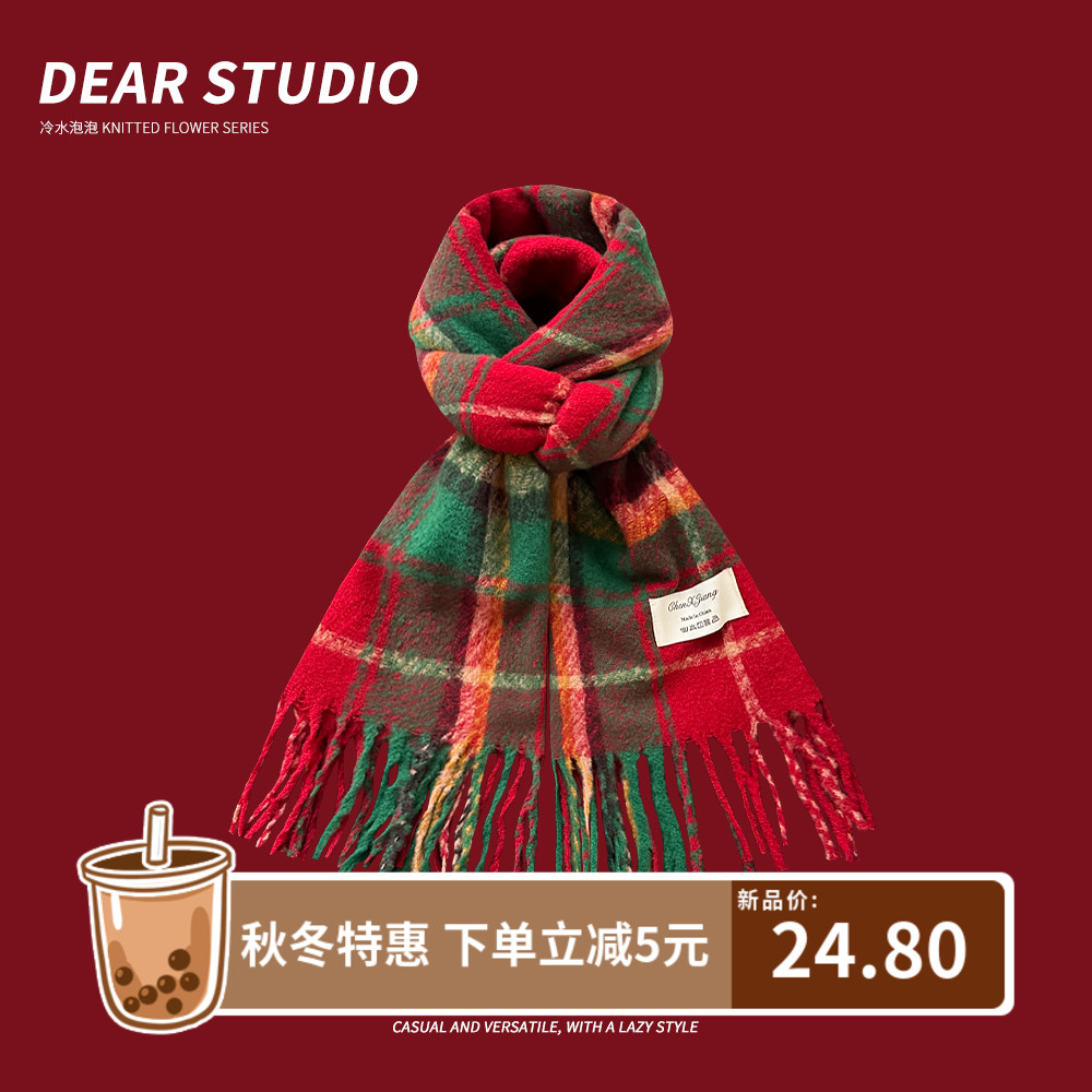 Атмосферный красный демисезонный удерживающий тепло универсальный шарф из искусственного меха для влюбленных, в корейском стиле