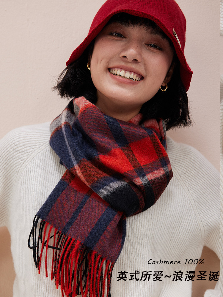 Романтический красный рождественский кашемировый британский шарф из чистого кашемира для женщин, зимний клетчатый шарф для мужчин, новый стиль 2025 года