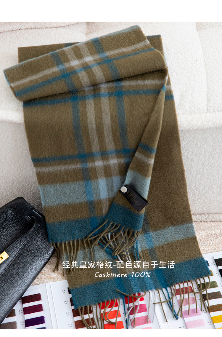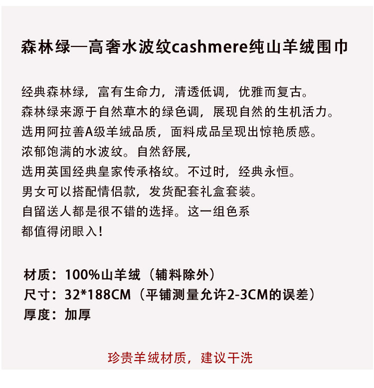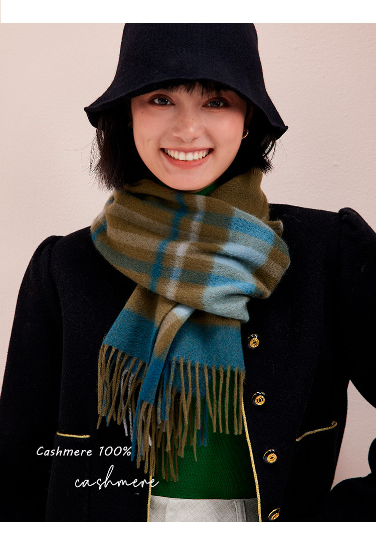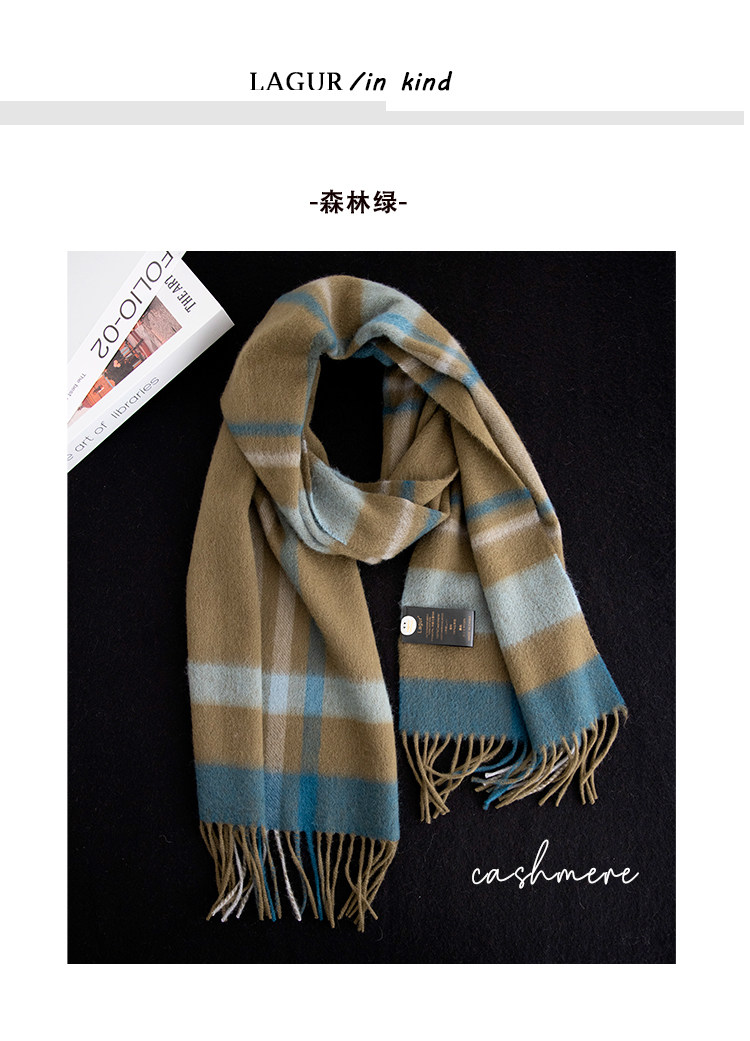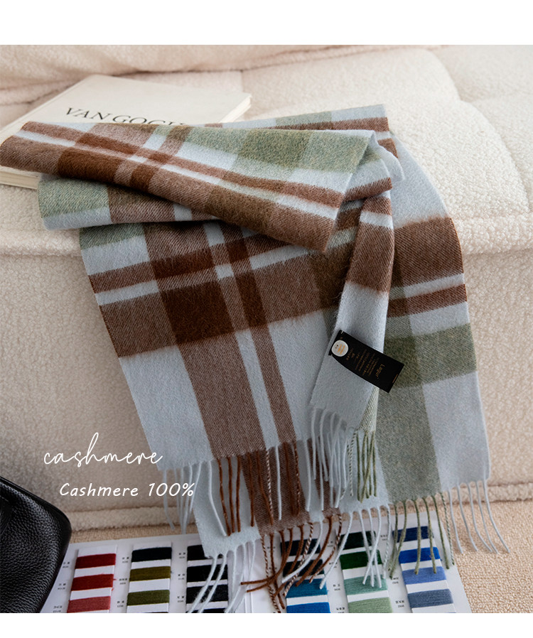 Кашемировый зеленый зимний высококлассный шарф, волнообразный узор
