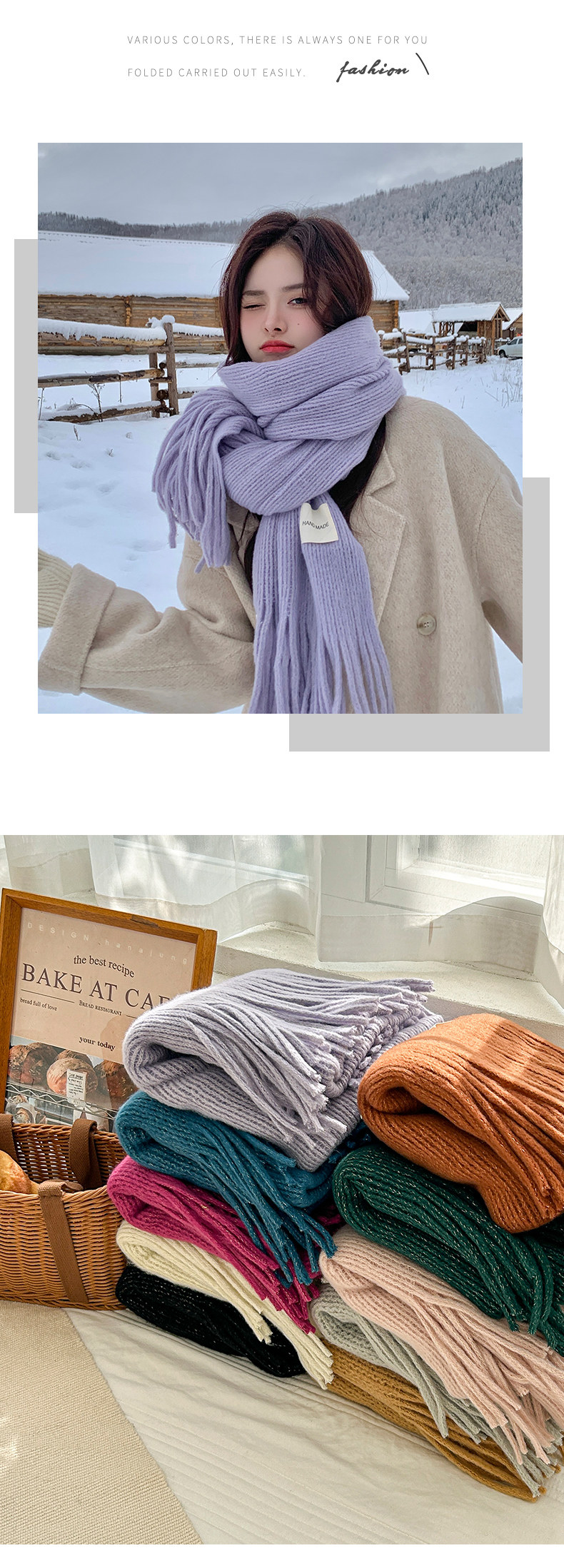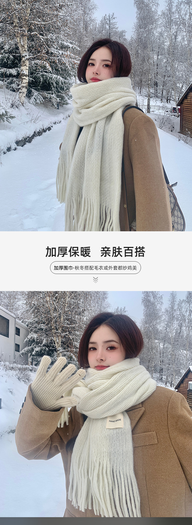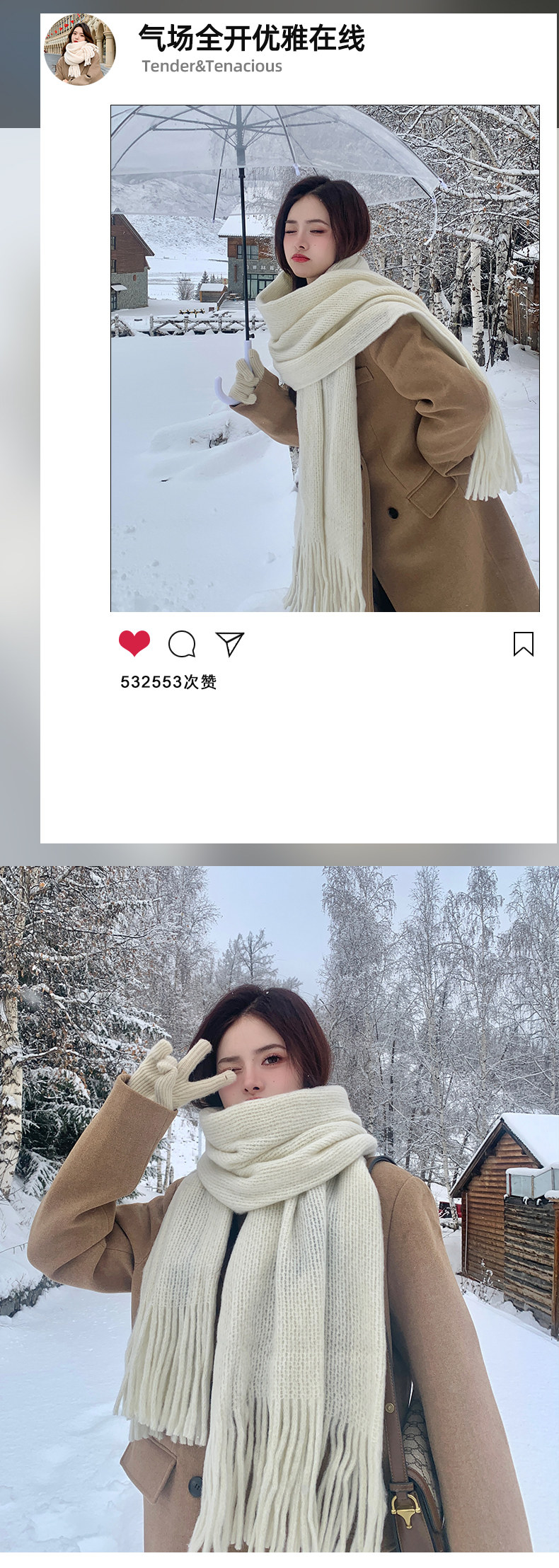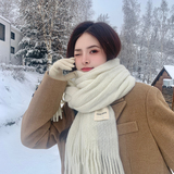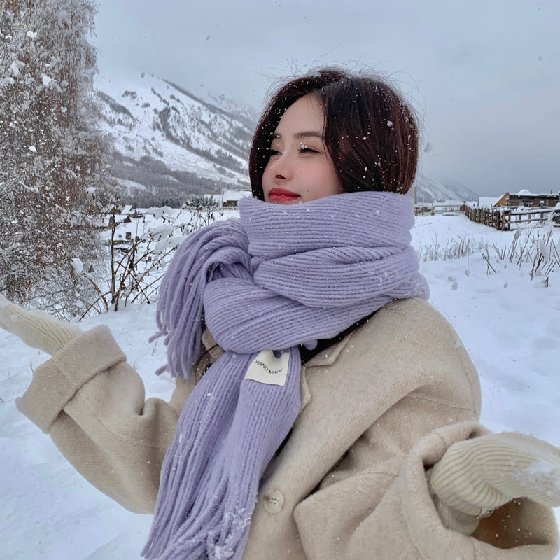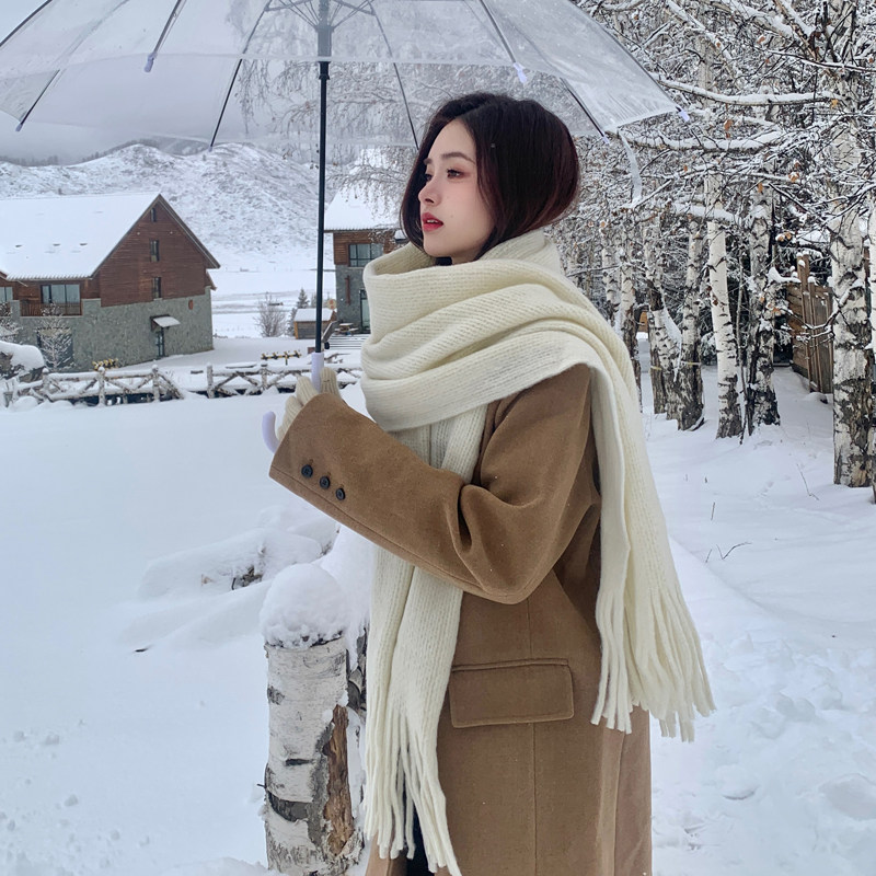 Трикотажный зимний белый длинный удерживающий тепло шарф, в корейском стиле, городской стиль, изысканный стиль