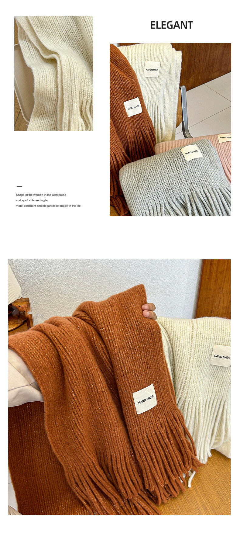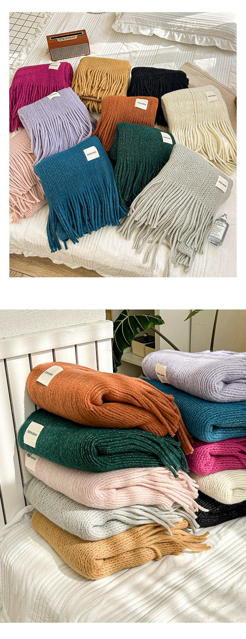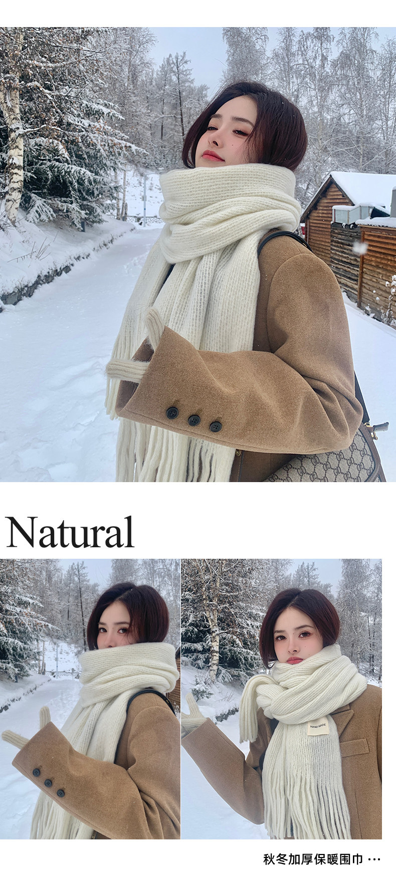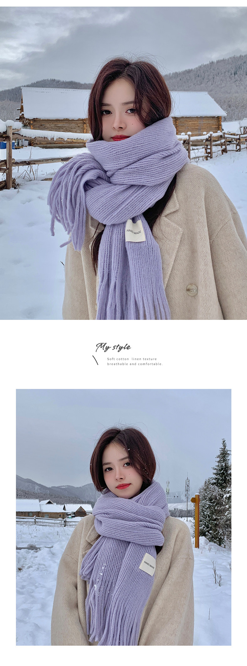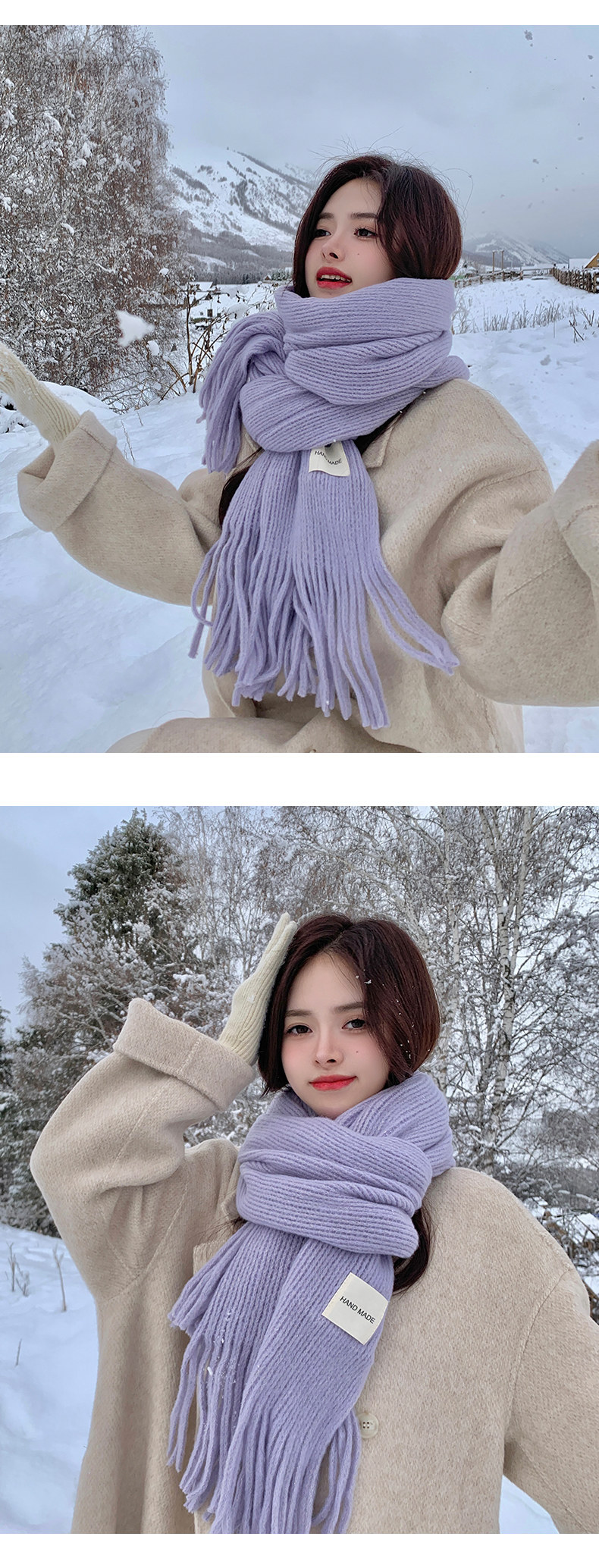 Трикотажный зимний белый длинный удерживающий тепло шарф, в корейском стиле, городской стиль, изысканный стиль