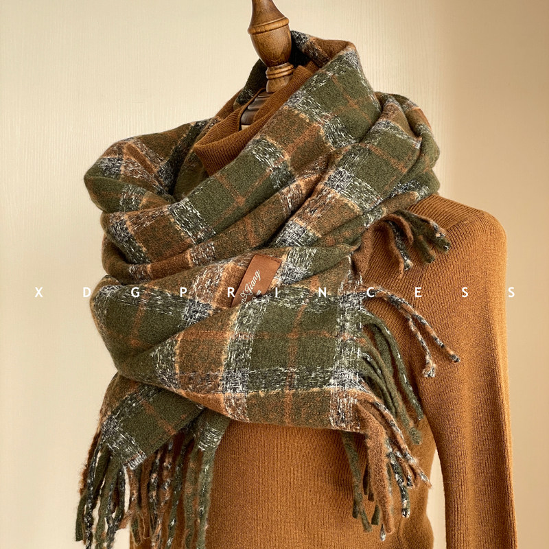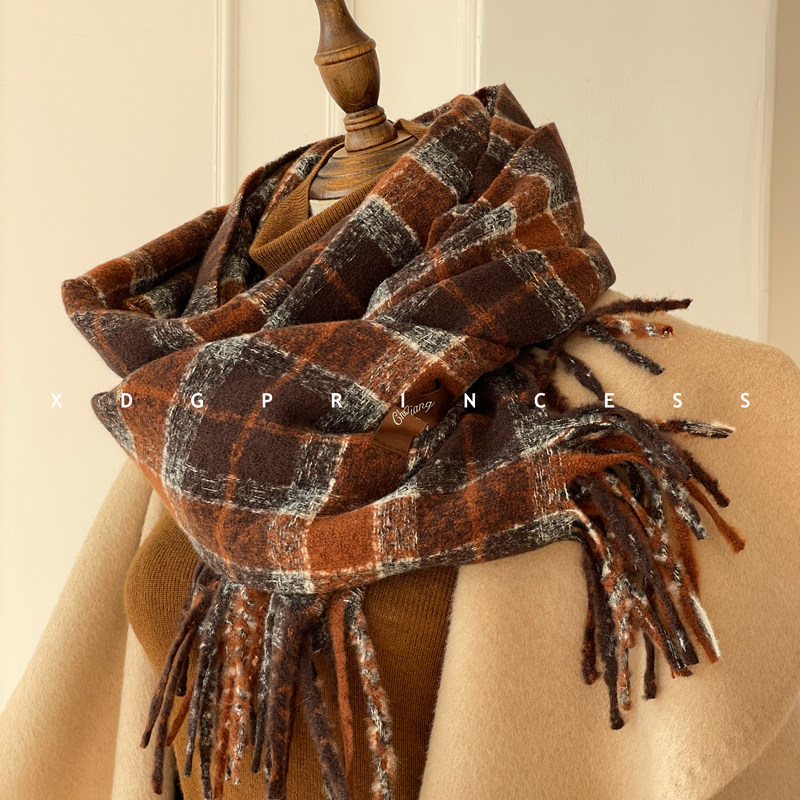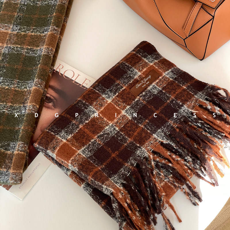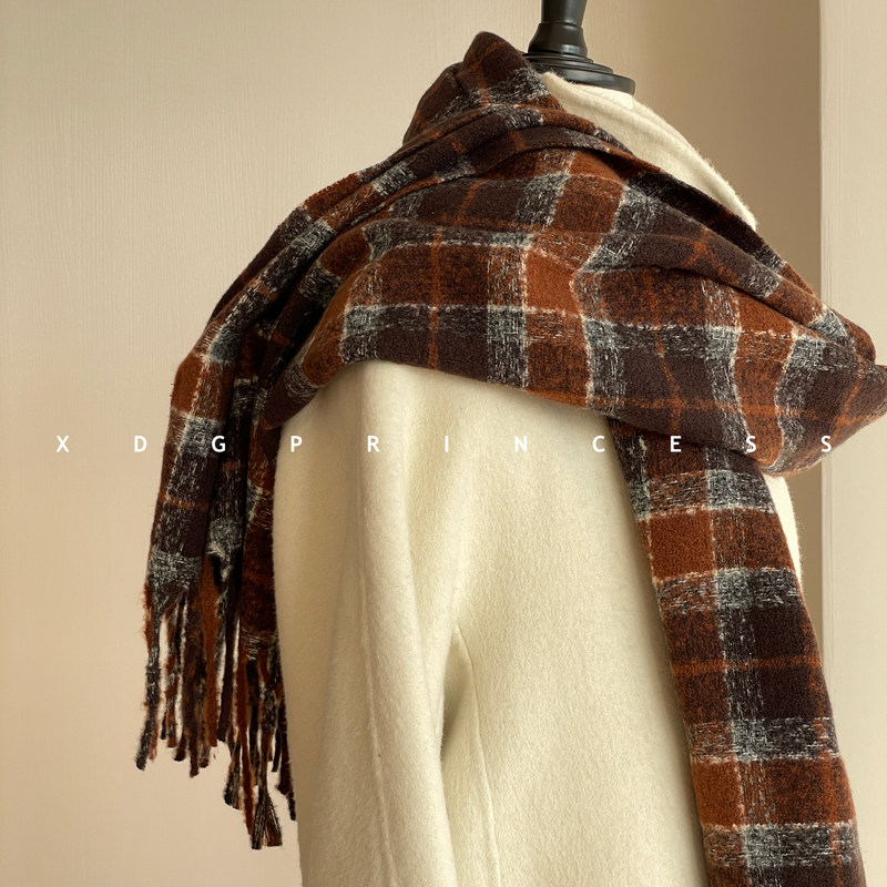 Экспорт ежедневного заказа ~ Соответствующий цвет JU High-end! Maillard Contrasting Plaid Scarf для женщин, осенняя и зимняя атмосфера шерстя