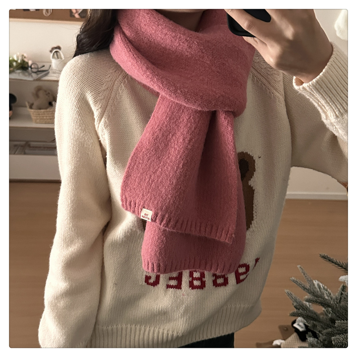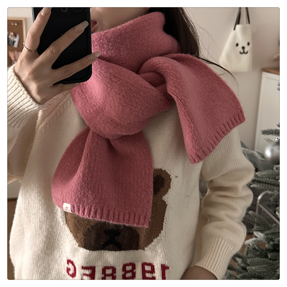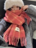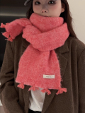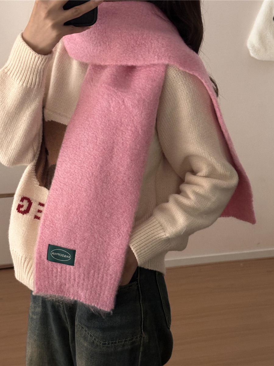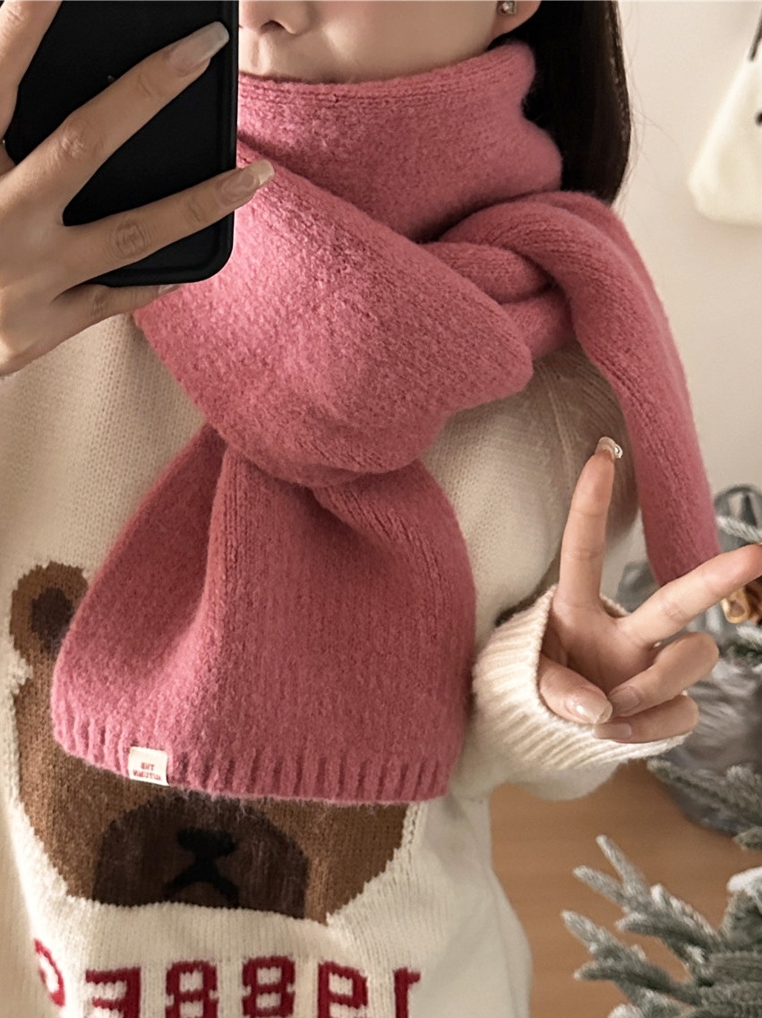 Розовая демисезонная клубника, трикотажный милый универсальный удерживающий тепло шарф, в корейском стиле