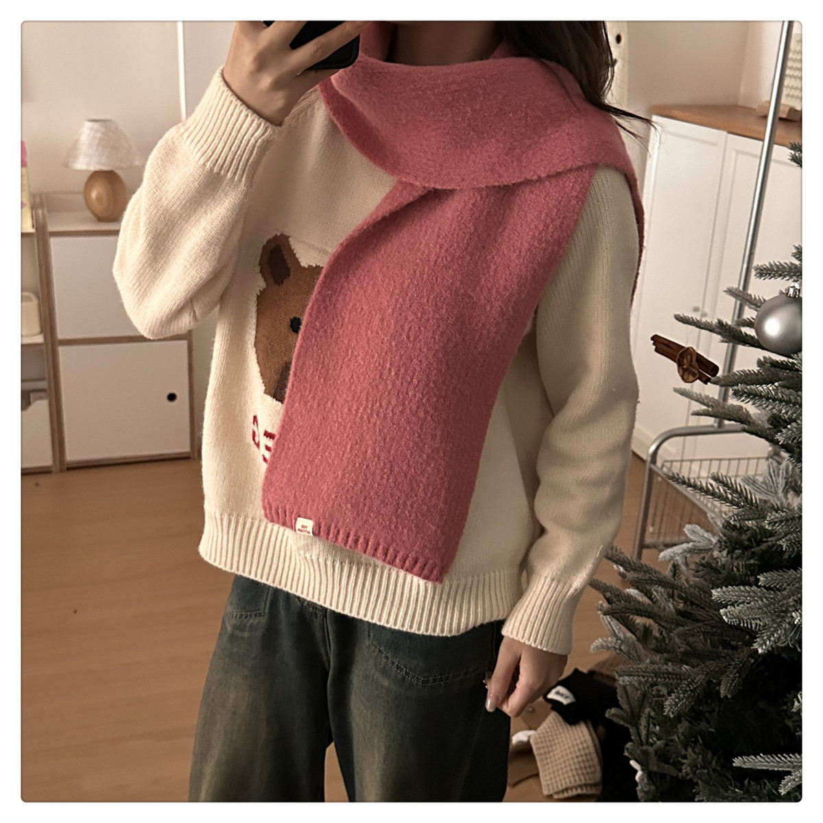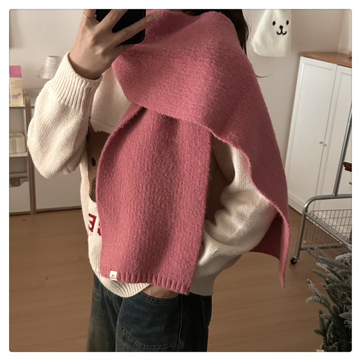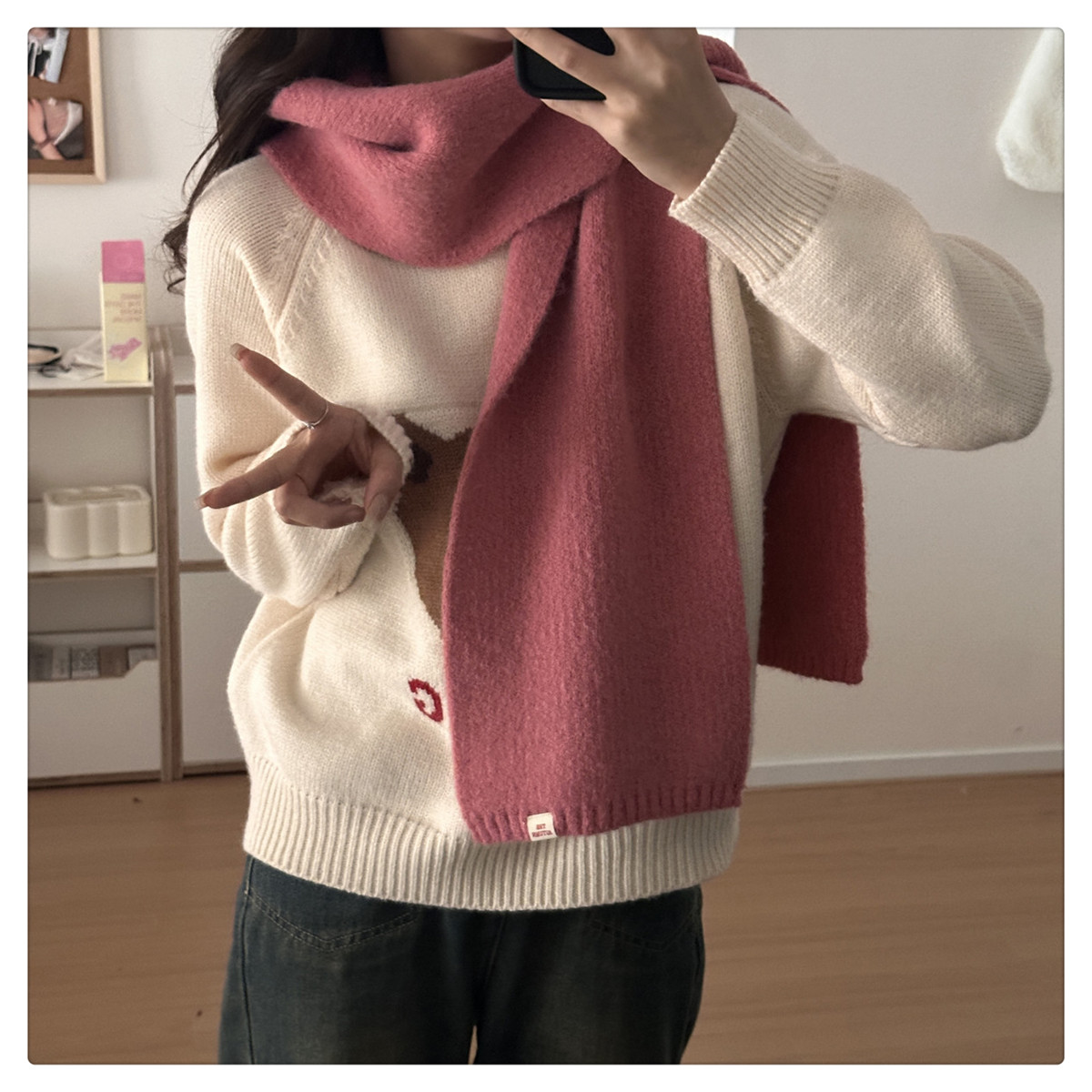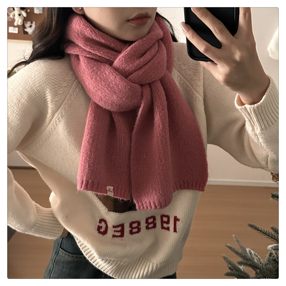 Розовая демисезонная клубника, трикотажный милый универсальный удерживающий тепло шарф, в корейском стиле