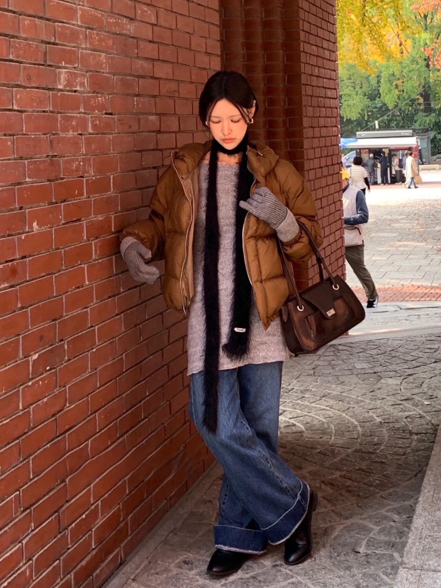 Уникальный Sei Corean Plufficy с атмосферой маленькие предметы универсальные черно -белые волосы узкая версия Y2K Scarf