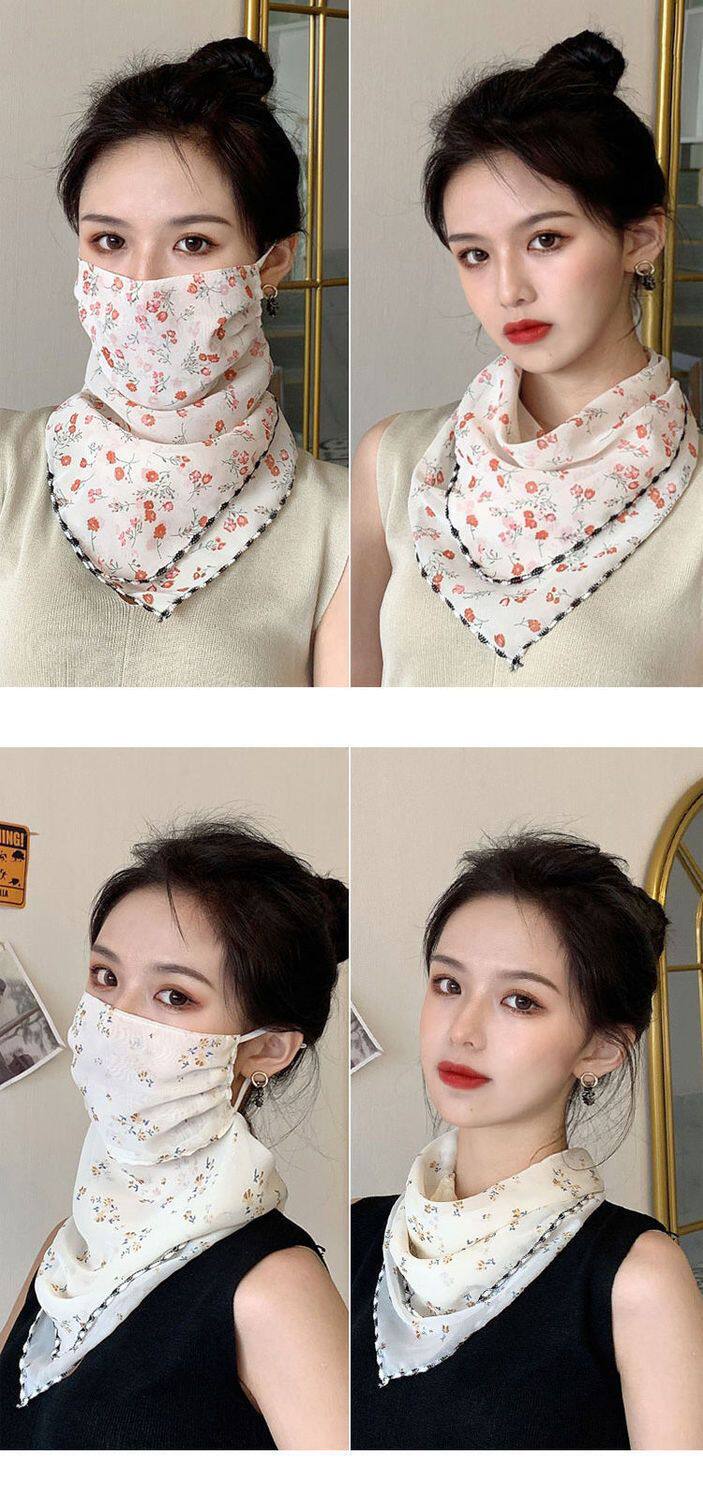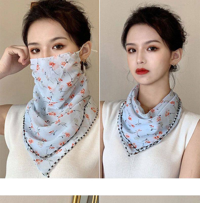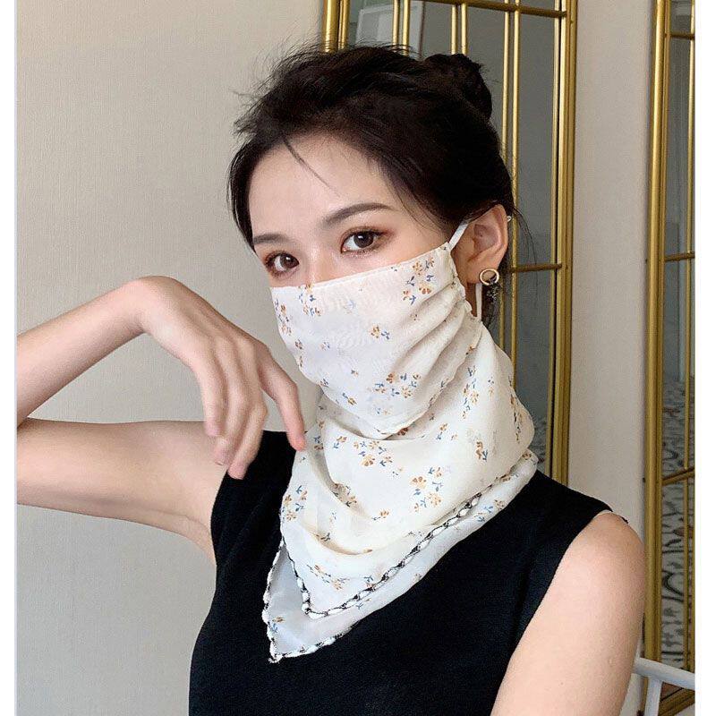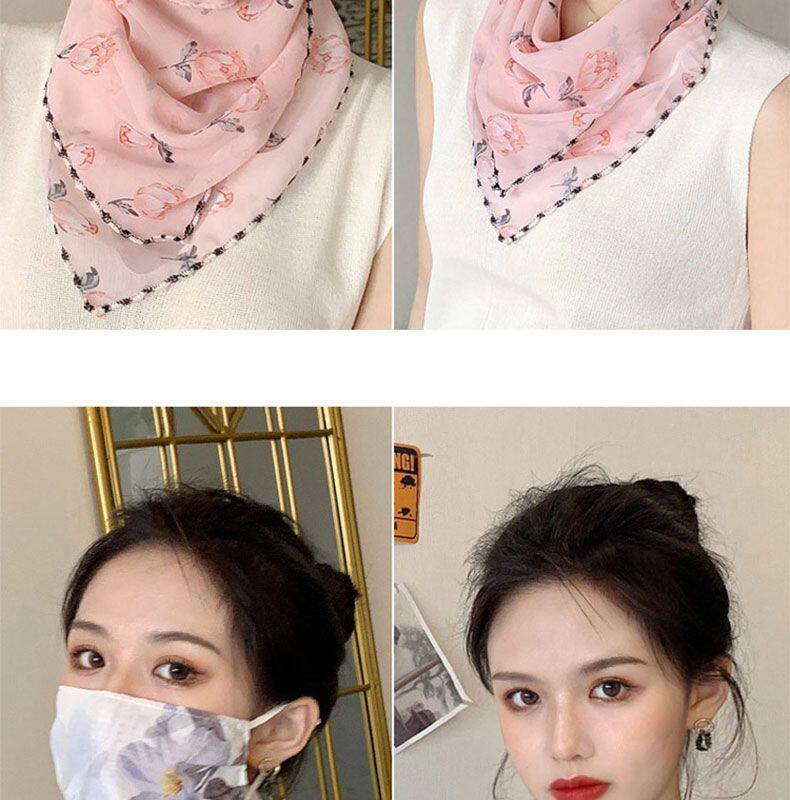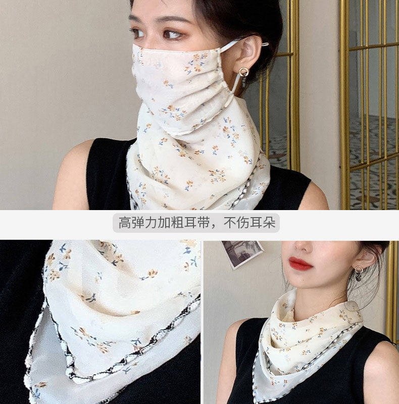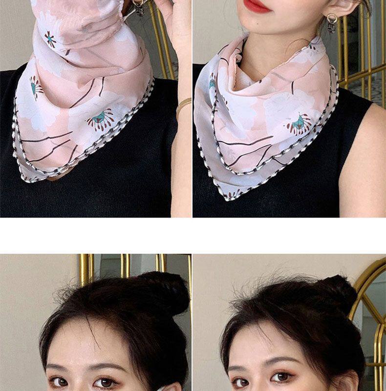 Шелковая вуаль, летняя легкая и тонкая треугольная маска, осенний высококлассный шарф, защита от солнца, с защитой шеи