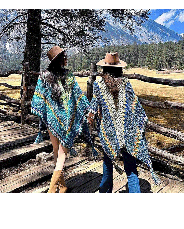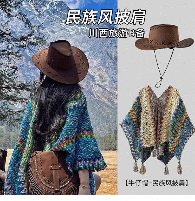 Ретро этнический плащ, накидка из провинции Юньнань, трикотажная шапка