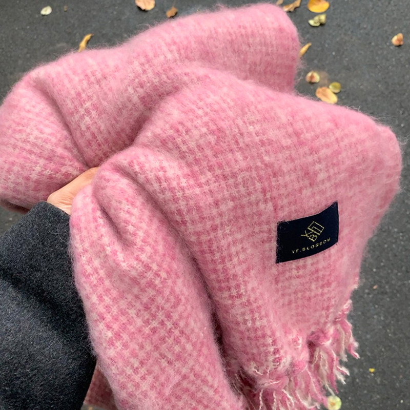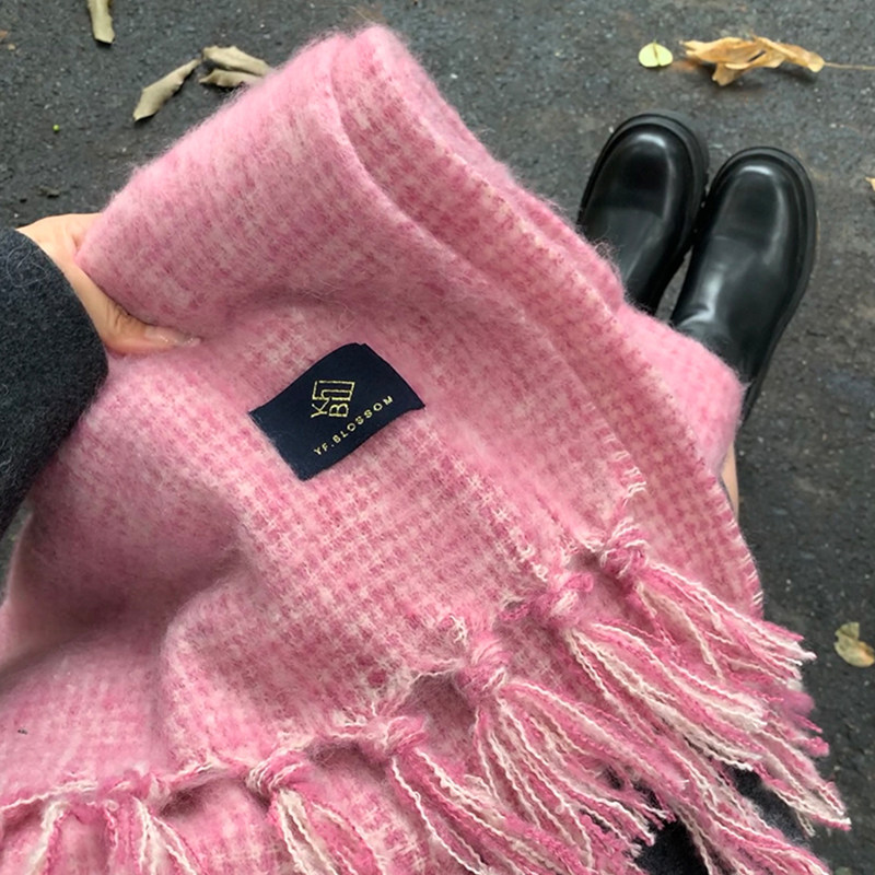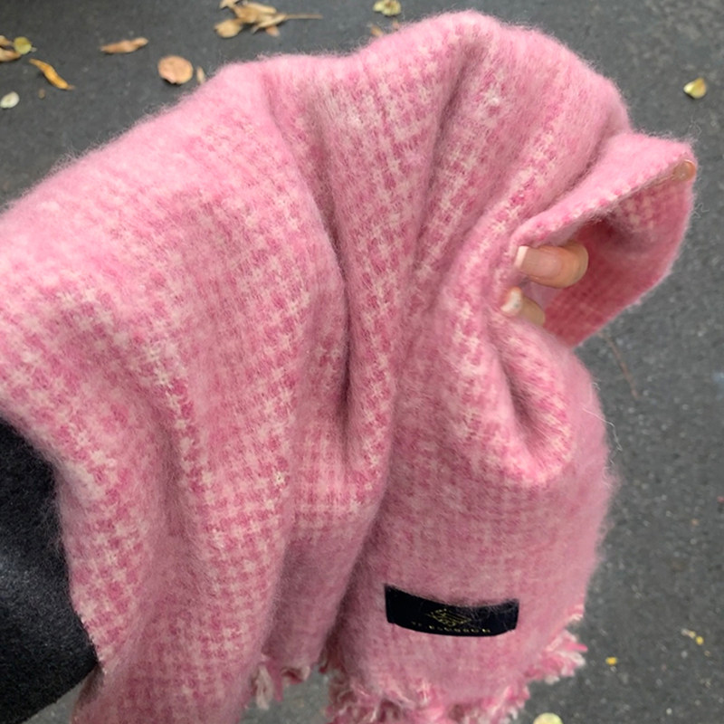 Розовый трикотажный демисезонный атмосферный универсальный утепленный шарф, 2024 года, в корейском стиле