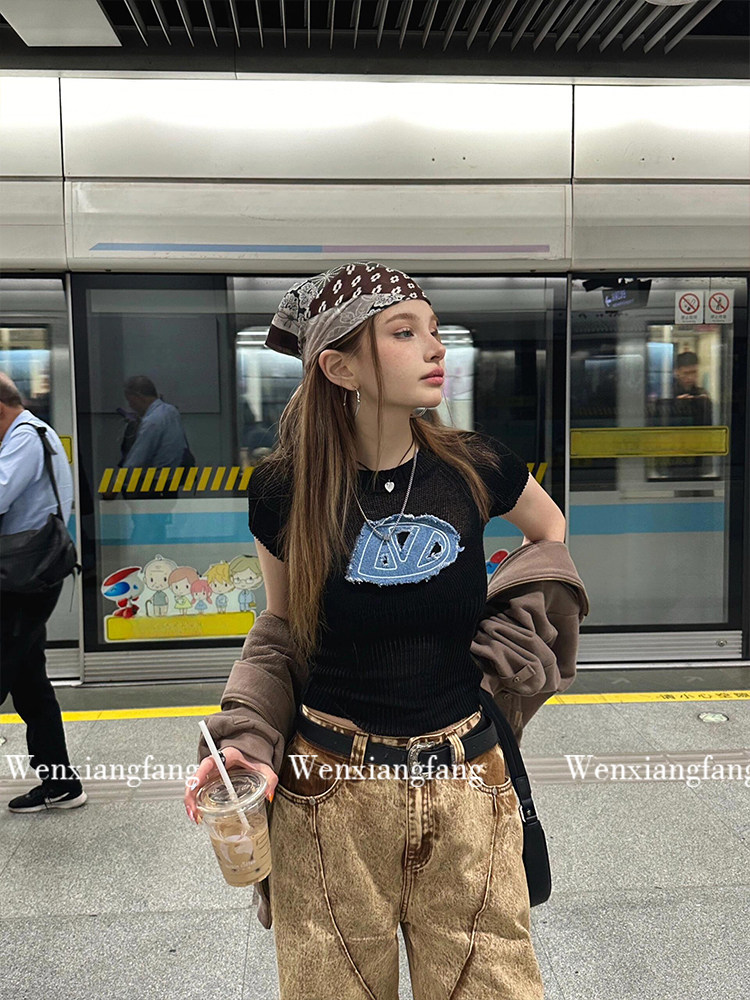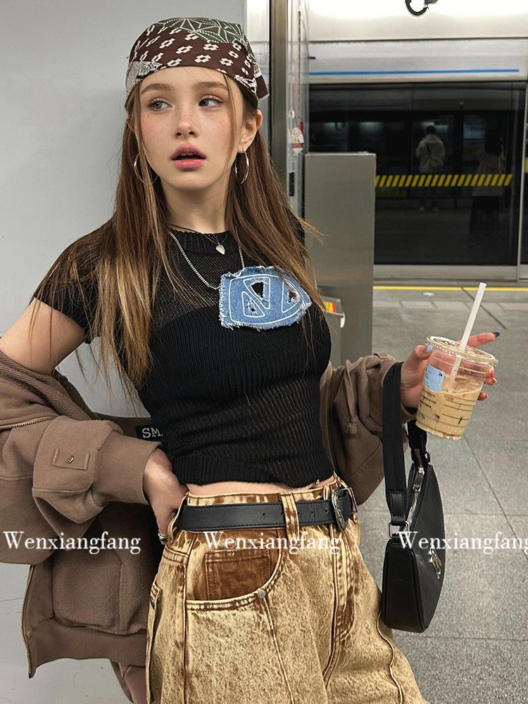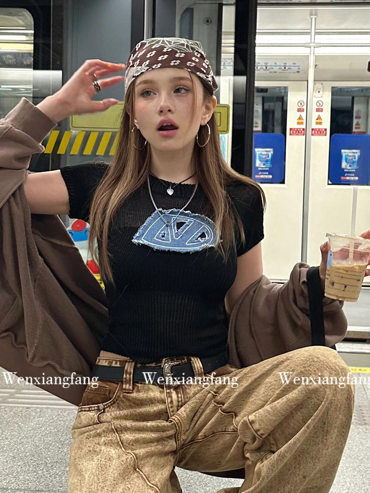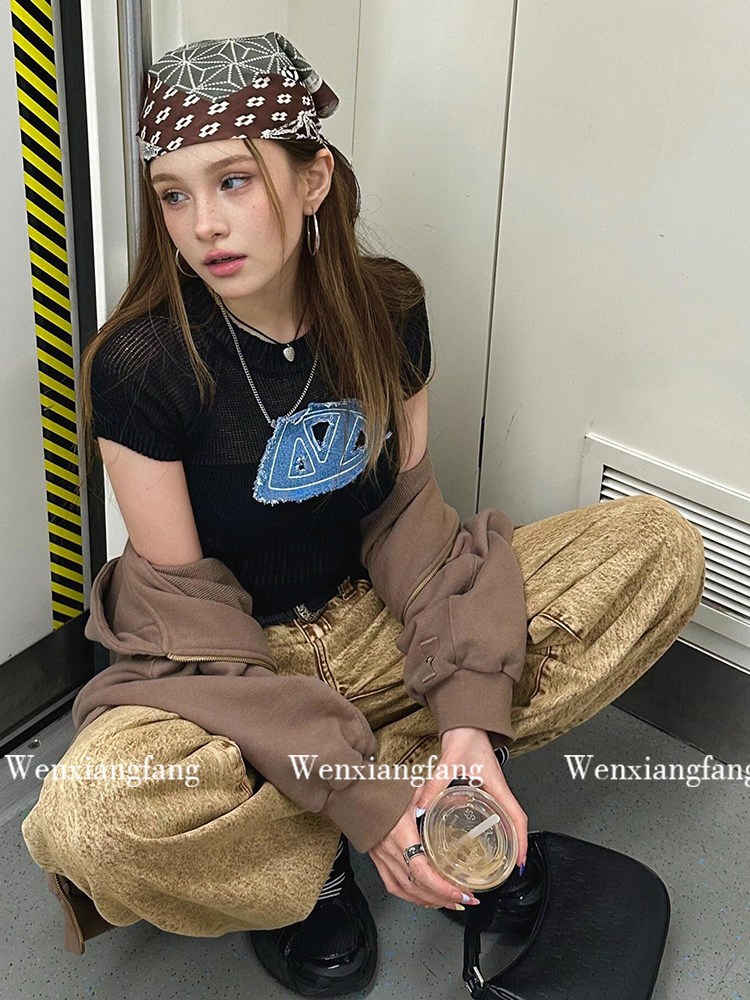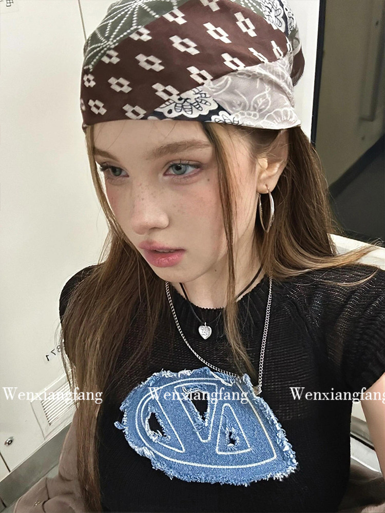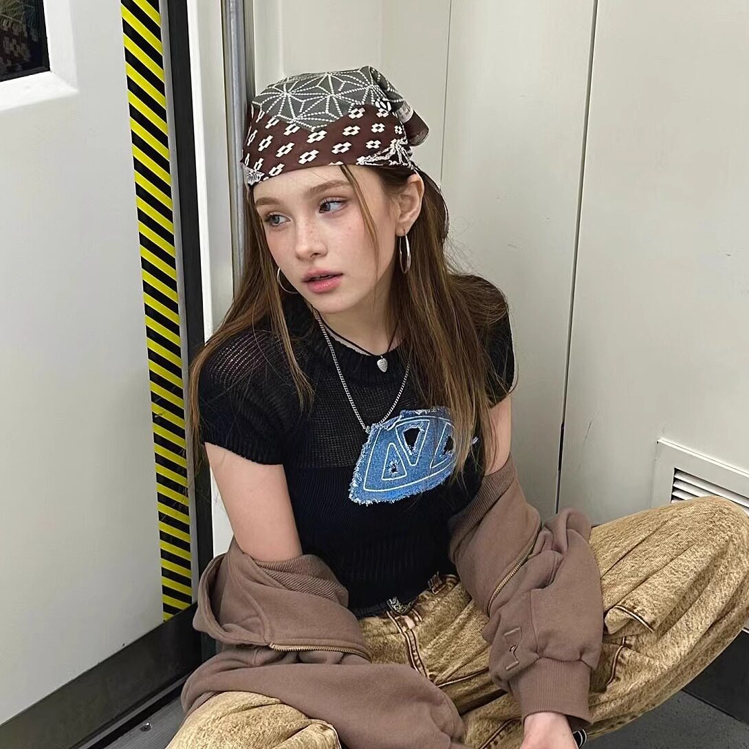 Ретро-американский платок ранний древний сладкий крутой горячая девушка y2k уличный шарф для волос танец хип-хоп квадратный шарф фотосъемка повязка для волос тенденция украшения