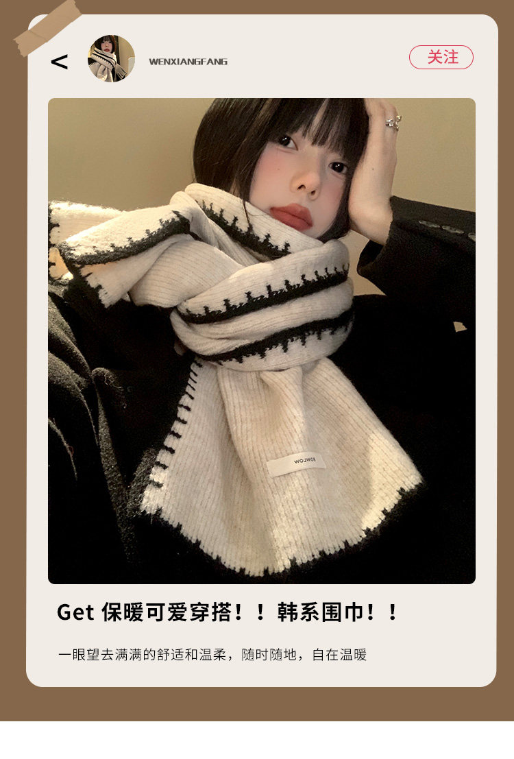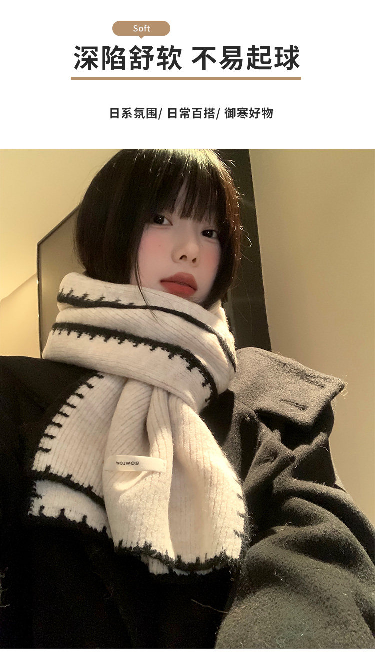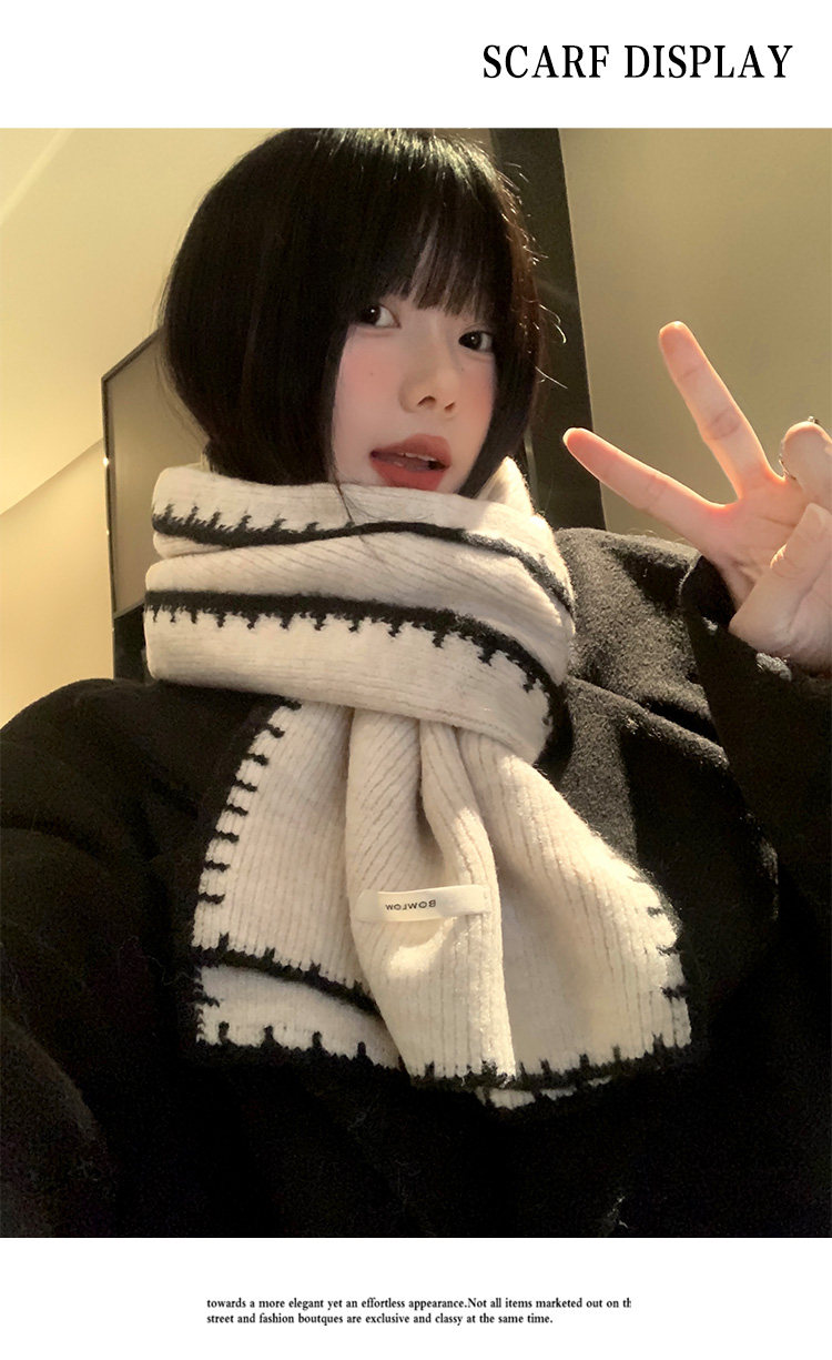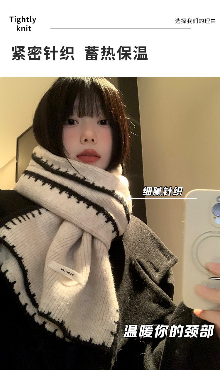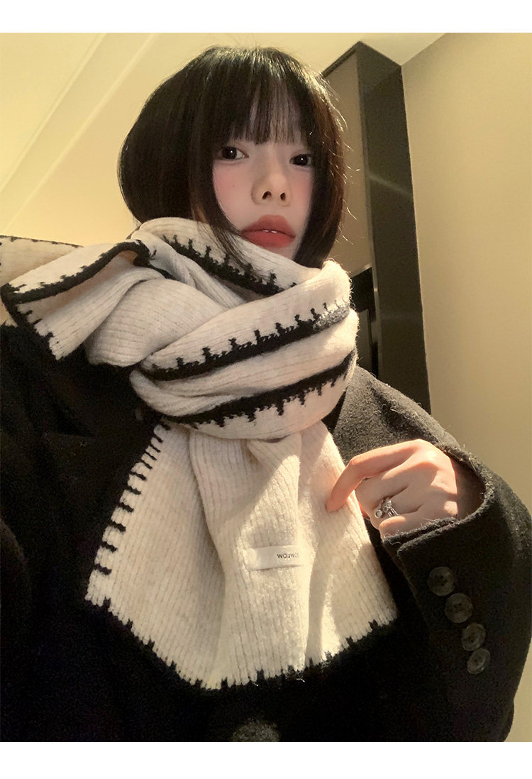 Трикотажный зимний атмосферный удерживающий тепло шарф, изысканный стиль, в корейском стиле, с защитой шеи