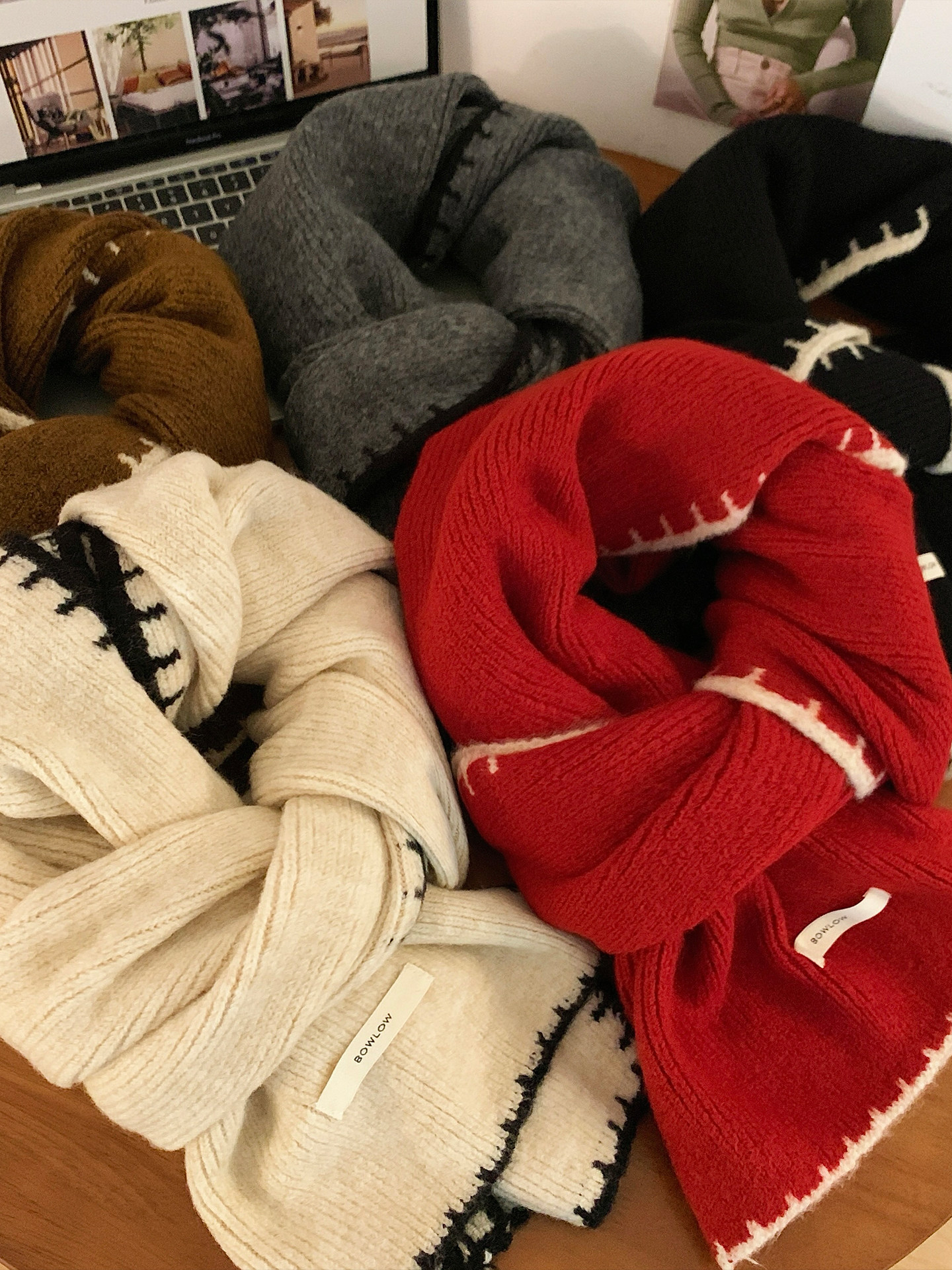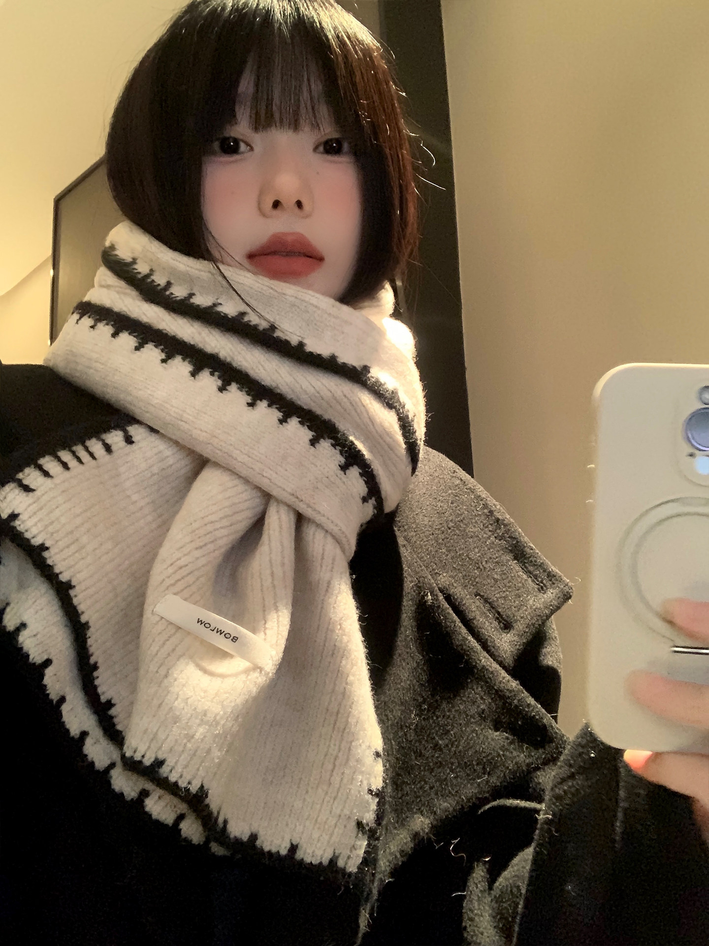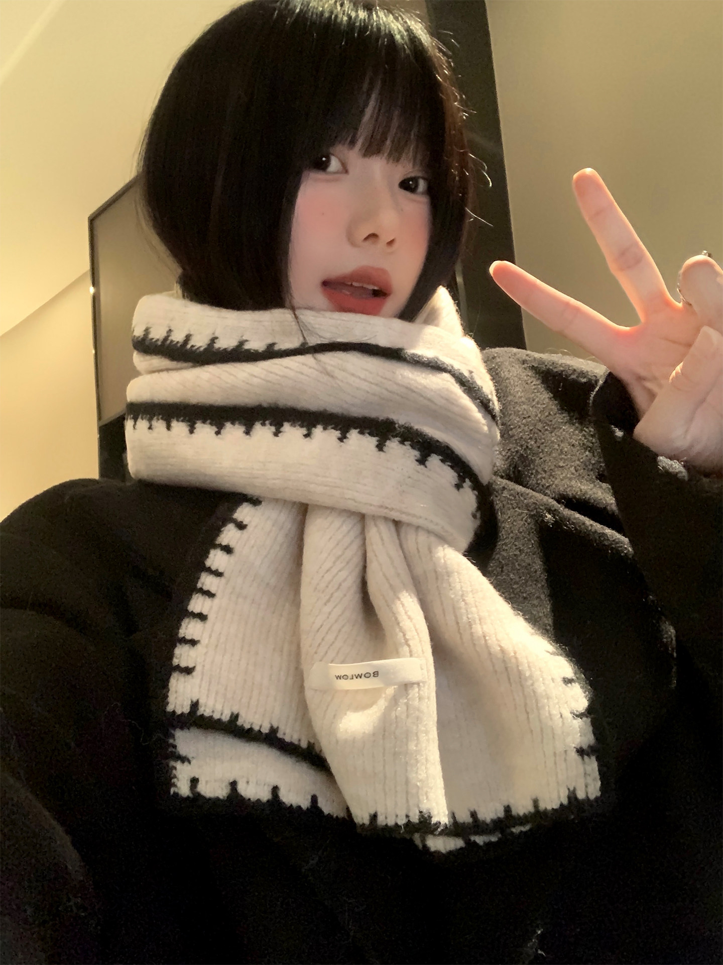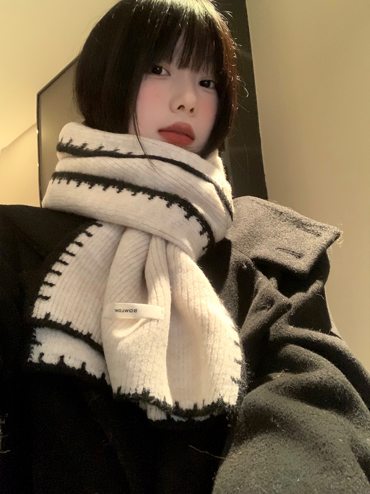 Трикотажный зимний атмосферный удерживающий тепло шарф, изысканный стиль, в корейском стиле, с защитой шеи