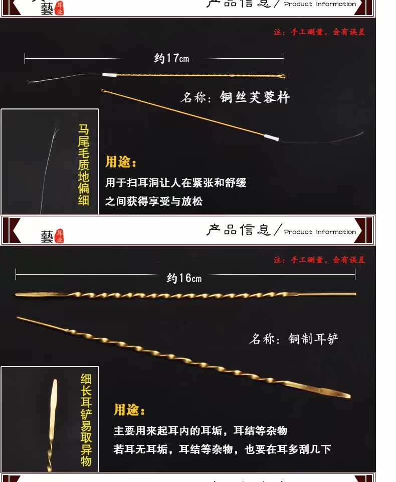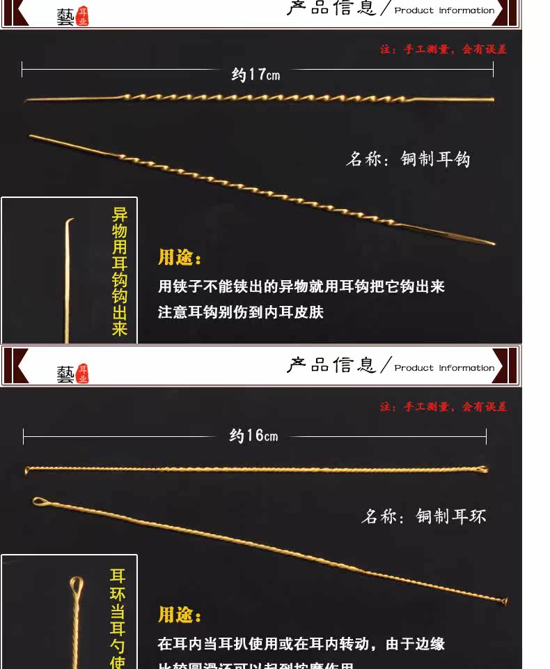 天艺 Ухо -Харвестирующие инструменты для выкопания артефакта уха, медные волосы, куриные волосы, волосы с краном крюч