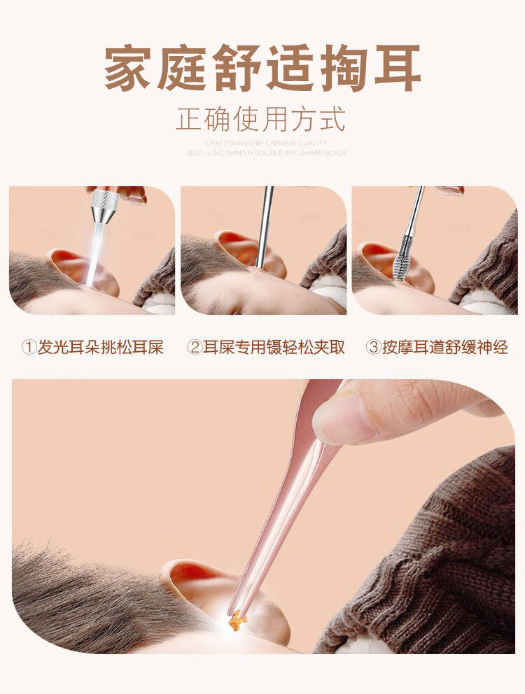 Детская светящаяся ухочистка, детский пинцет для ушей, комплект