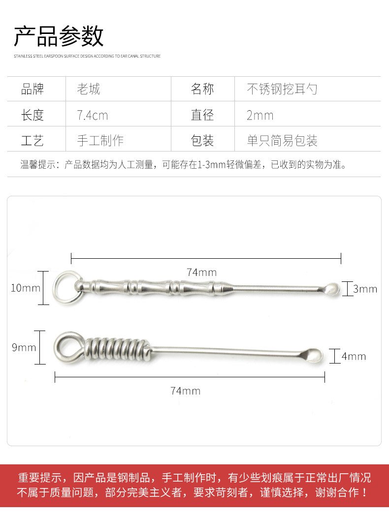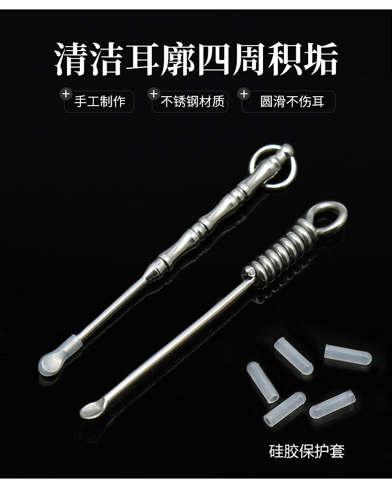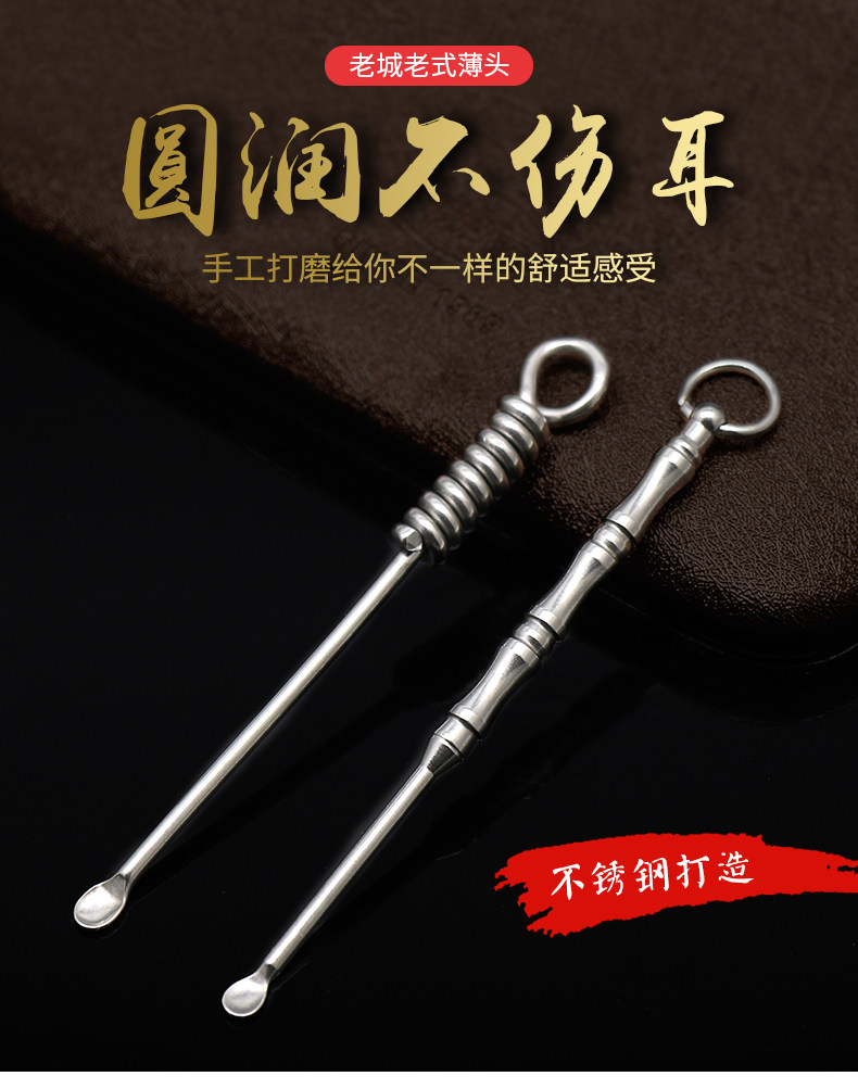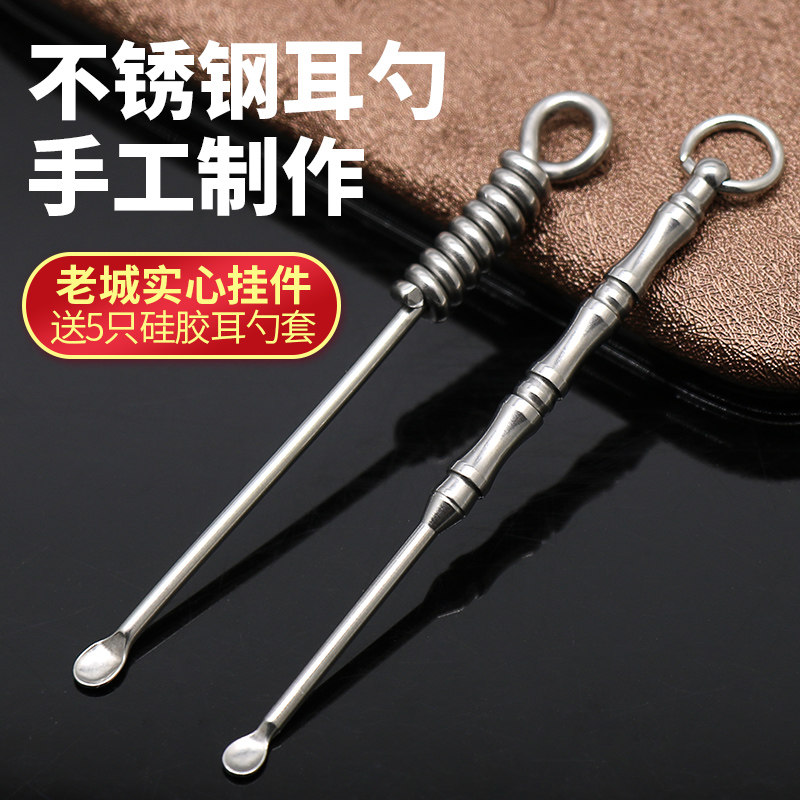 老城 Ухочистка из нержавеющей стали, старомодный брелок для ушей ручной работы