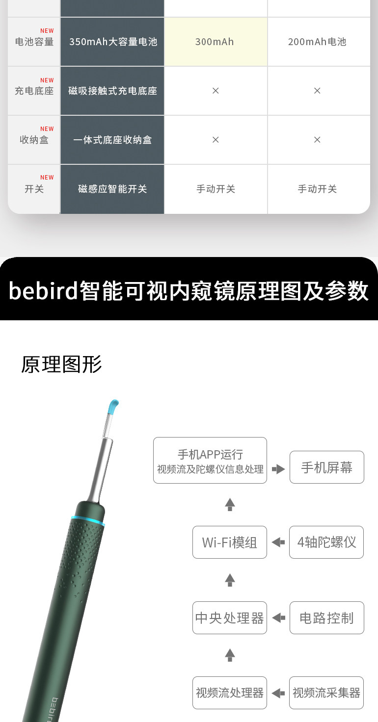 Хаммиминный птиц Bebird Smart Visual Ear Model M9 Pro Coug Ушная ложка ушной артефакт HD Tattoo