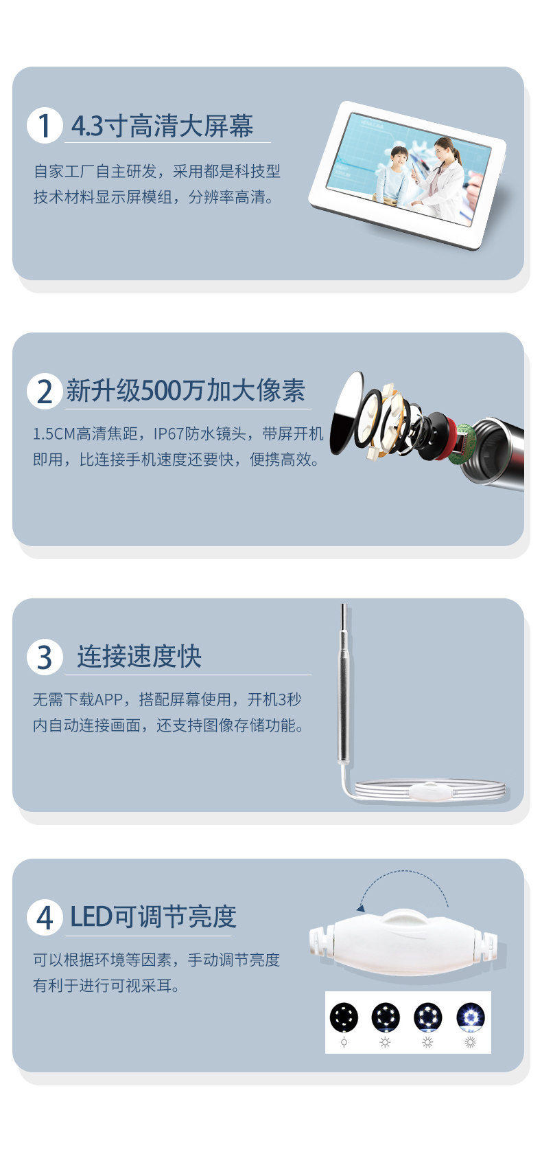 Полость носа, ухочистка с подсветкой, 4.5 дюймов, 500W
