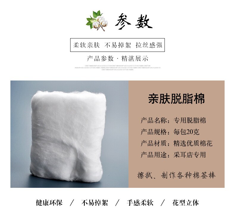 Гигроскопическая вата, ухочистка для ушей, антибактериальные хлопковые шарики, хлопковые ватные палочки, 20 грамм