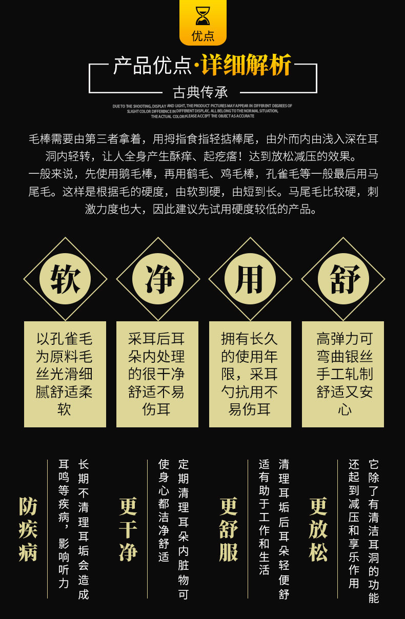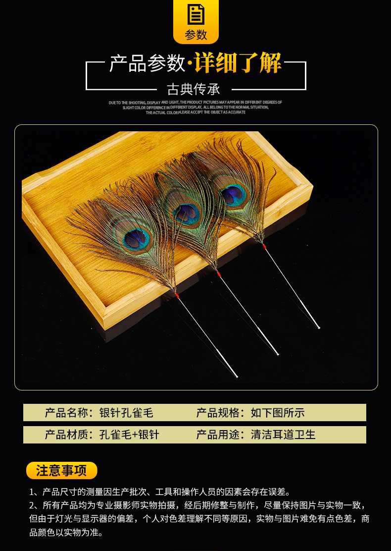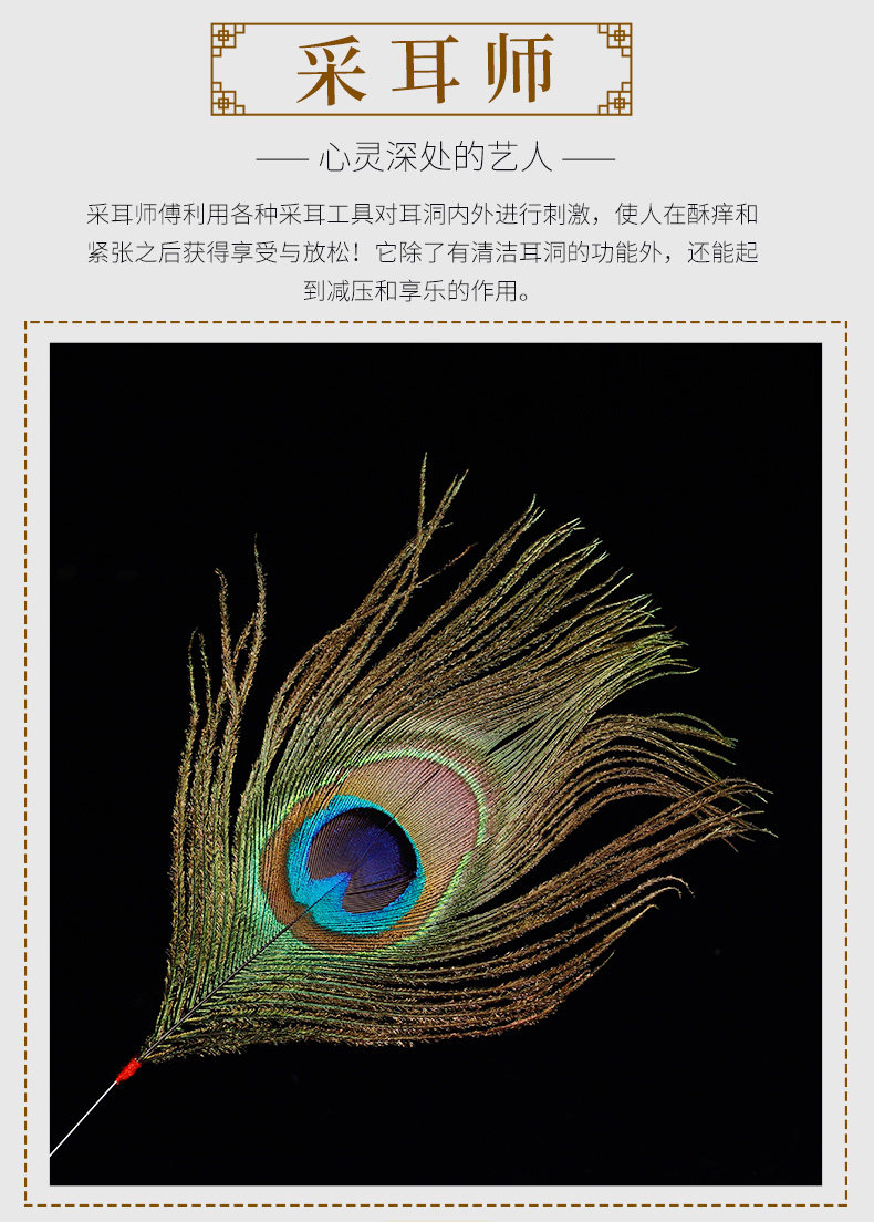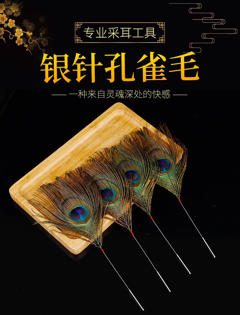 Высокий инструмент для выбора ушей Серебряный иголка куриная пор павлин Королевский ушной канал