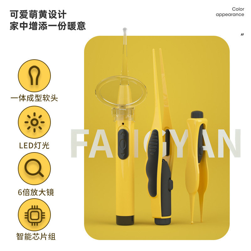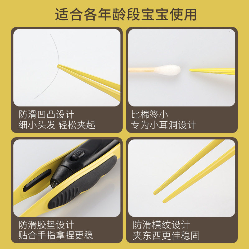 Ухочистка для ушей, светящийся безопасный силиконовый детский пинцет