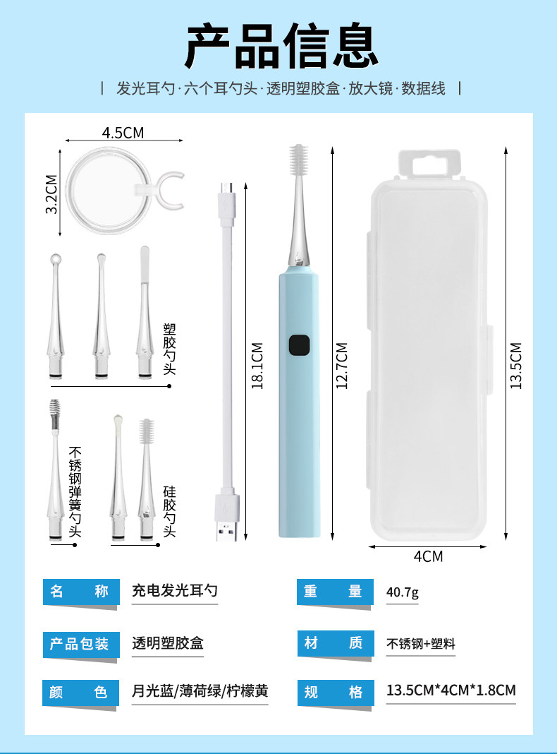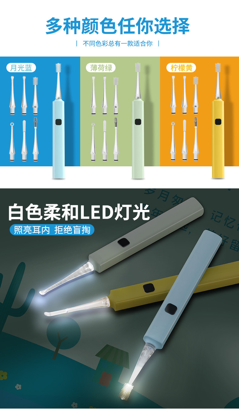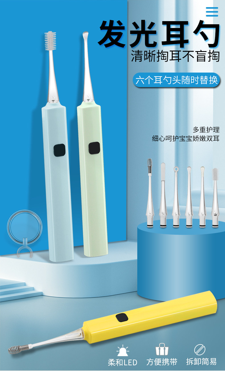 Универсальная светящаяся безопасная ухочистка с зарядкой