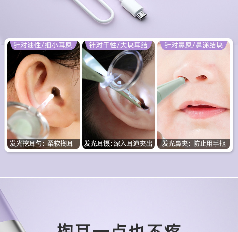 Светящаяся детская ухочистка, детский пинцет для ушей