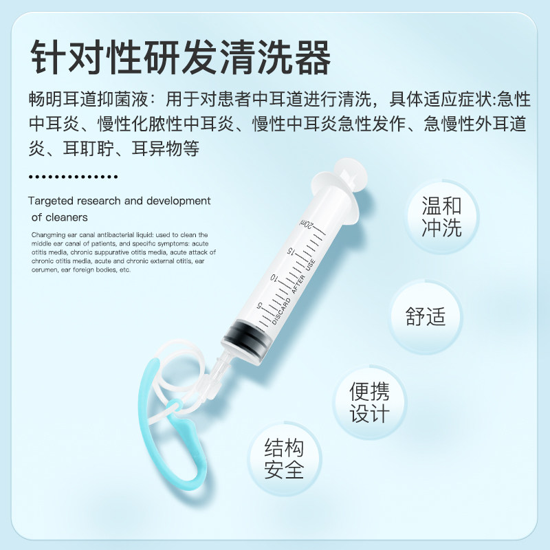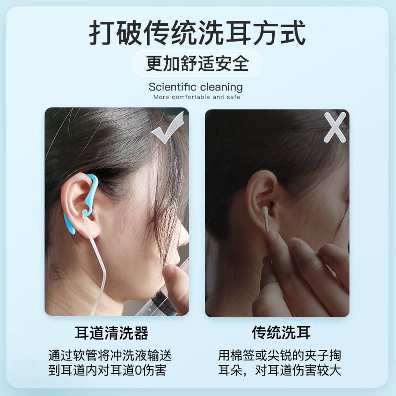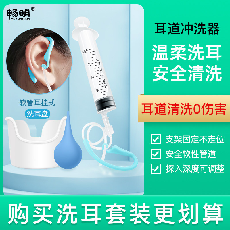 Помывание ушного канала промывание 清 Дети, чистящие уши в среднем ухе, поглощая инъекцию во внешнем ушном канале.