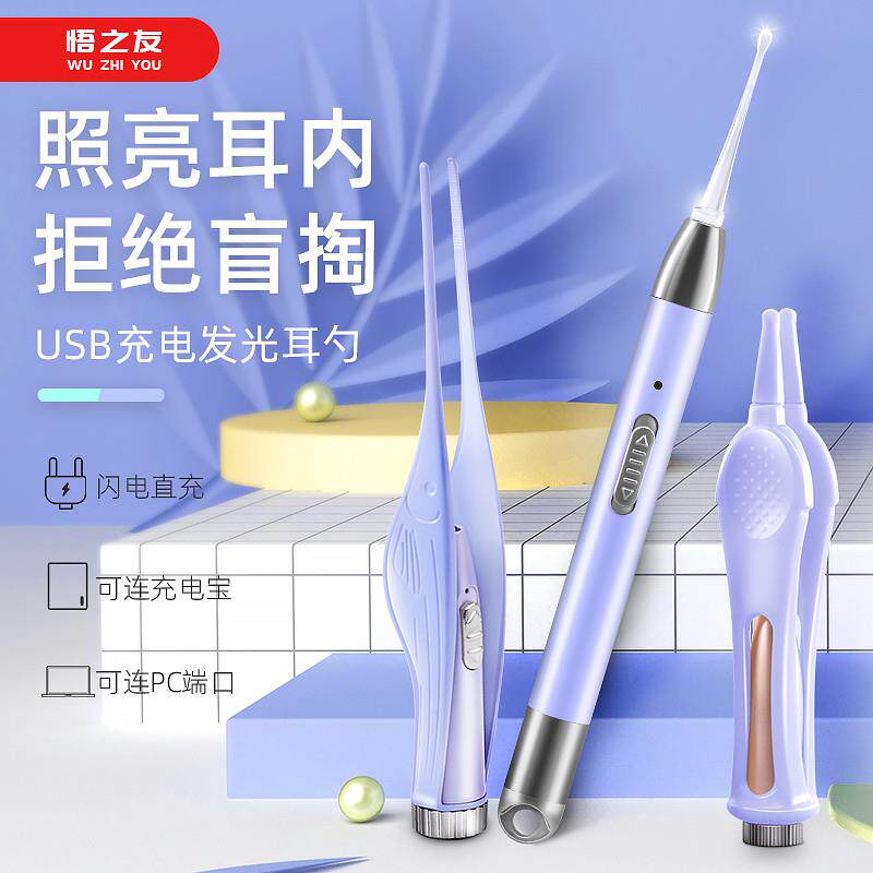 Светящаяся детская ухочистка с зарядкой, комплект для ушей