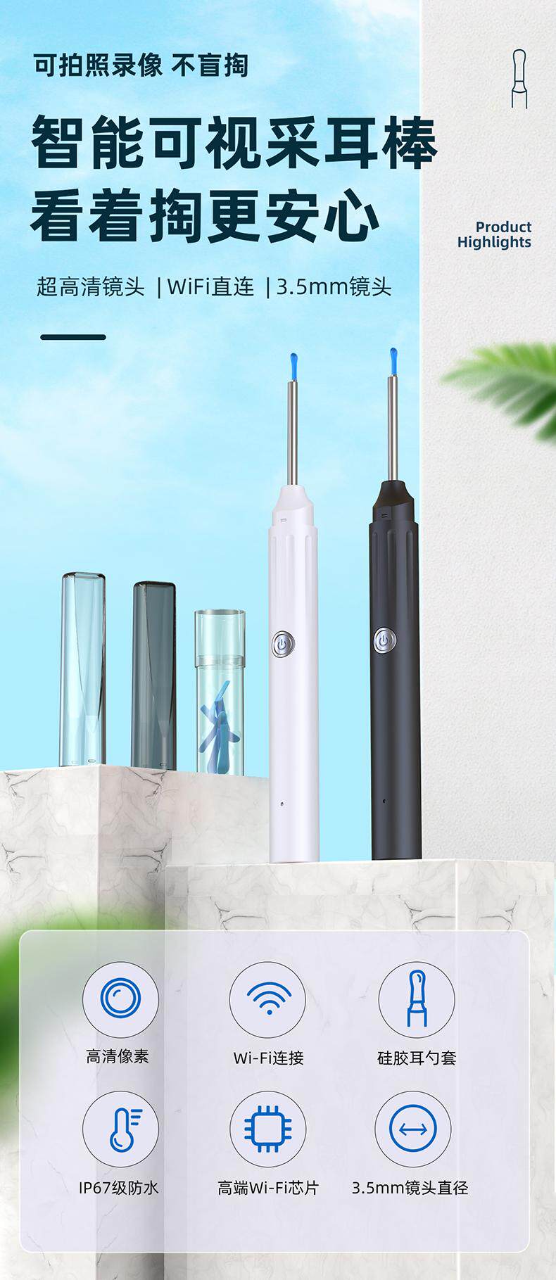 Kensoya Home Life Визуальный звукосниматель для ушей Инструмент для очистки артефактов Инструмент для чистки ушей