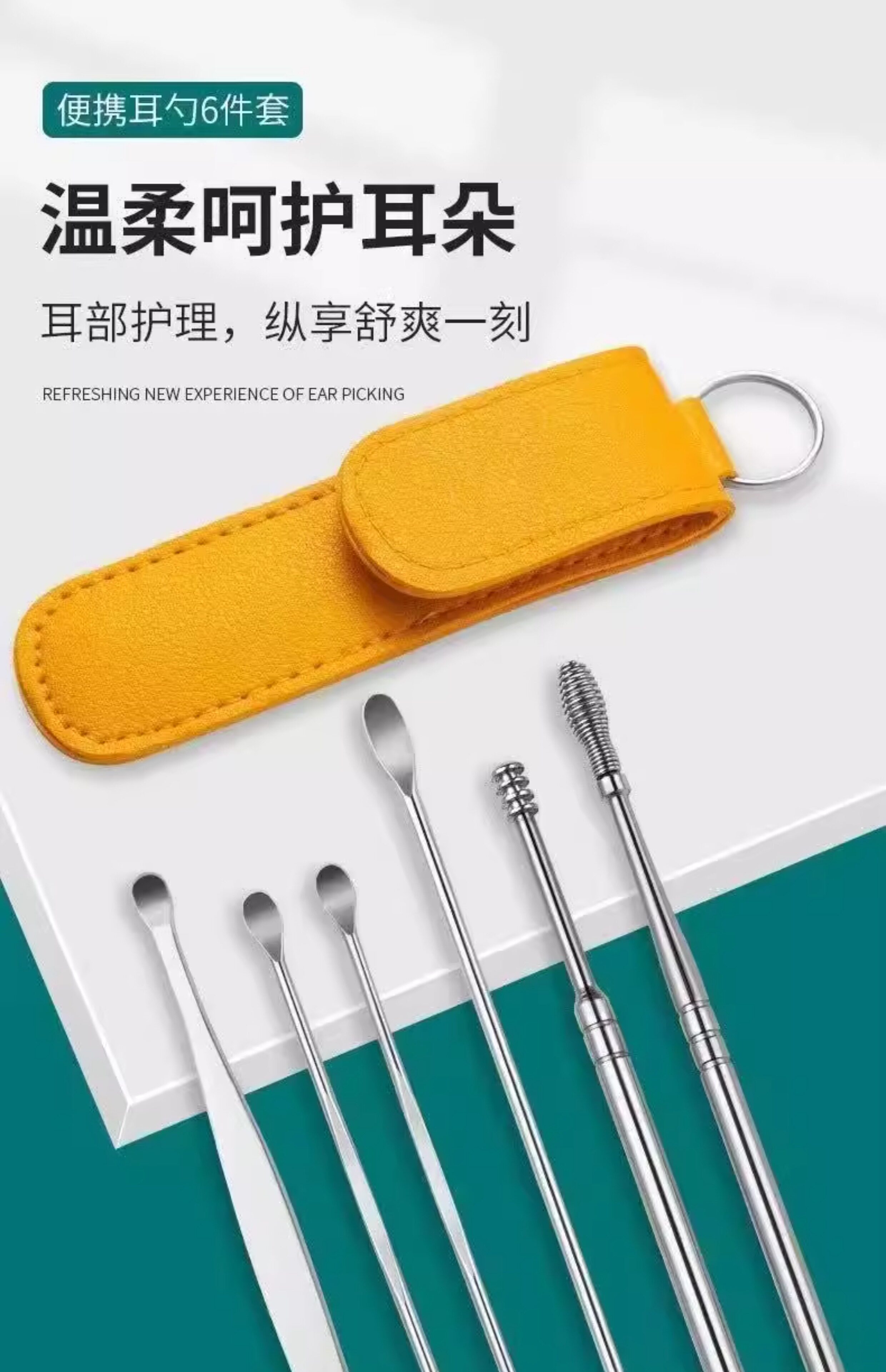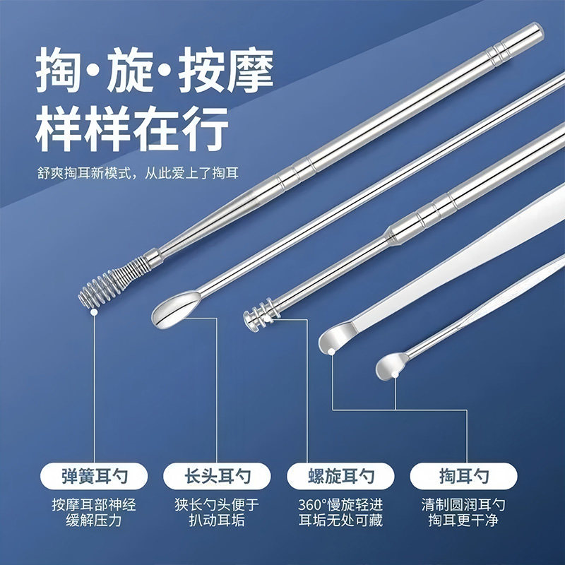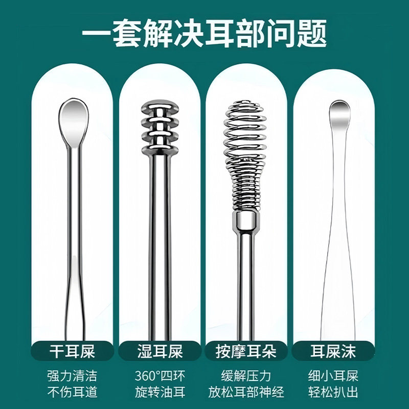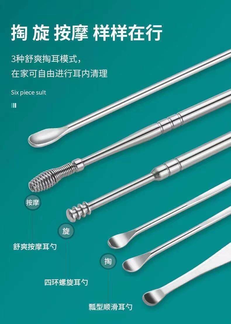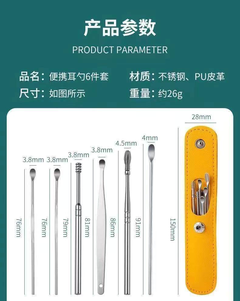 Комплект, портативная ухочистка для ушей для взрослых из нержавеющей стали