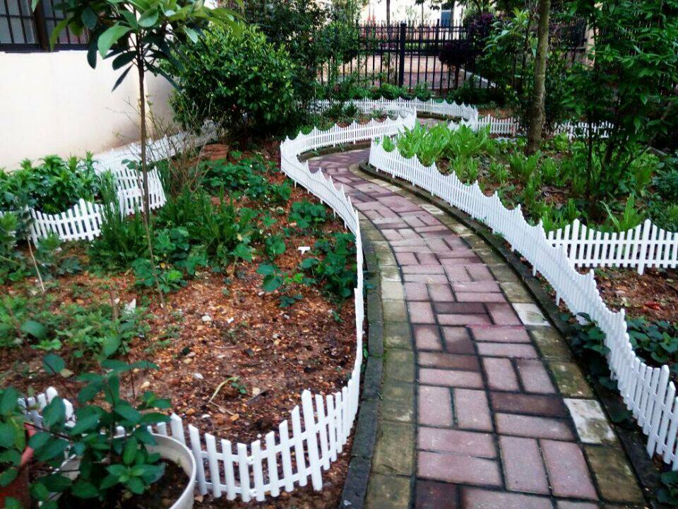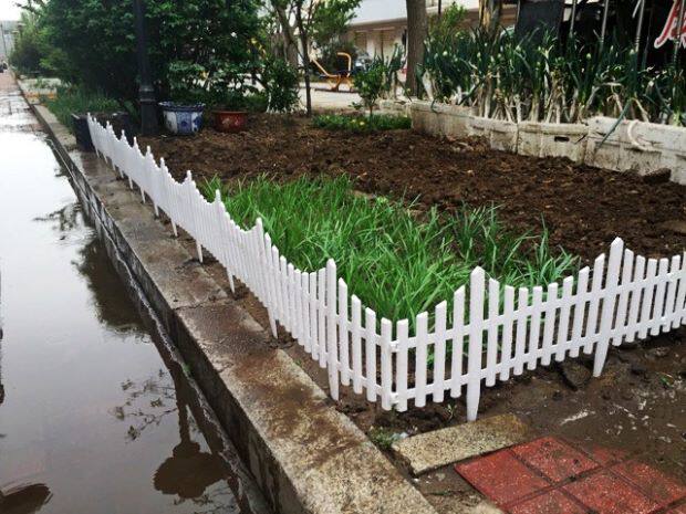 Белое ограждение, пластиковый цветочный горшок
