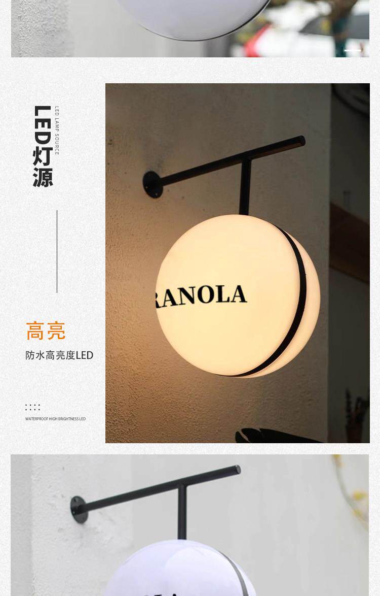 Круглый сферический акриловый светящийся боковой знак, световой короб, рекламный щит, дверная голова, креативный дверной знак, дисплей, световой знак, слово
