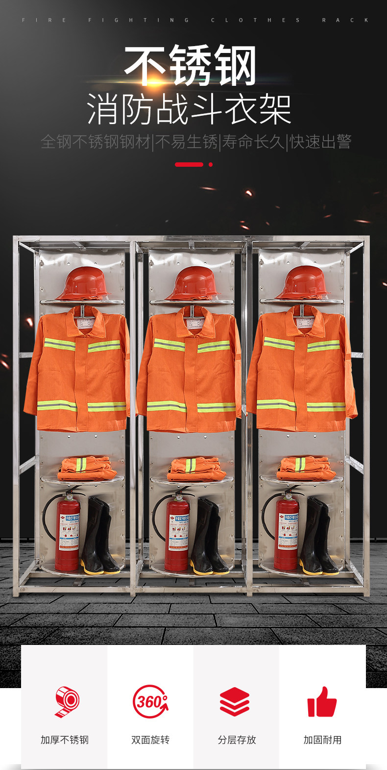 Сервисная стойка для борьбы с нержавеющей сталью 304 Двойная стойка с двойной нагрузкой может повернуть службу спасательной службы пожарной защиты.