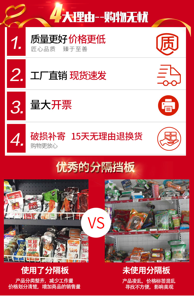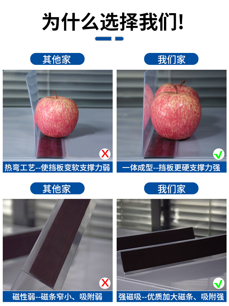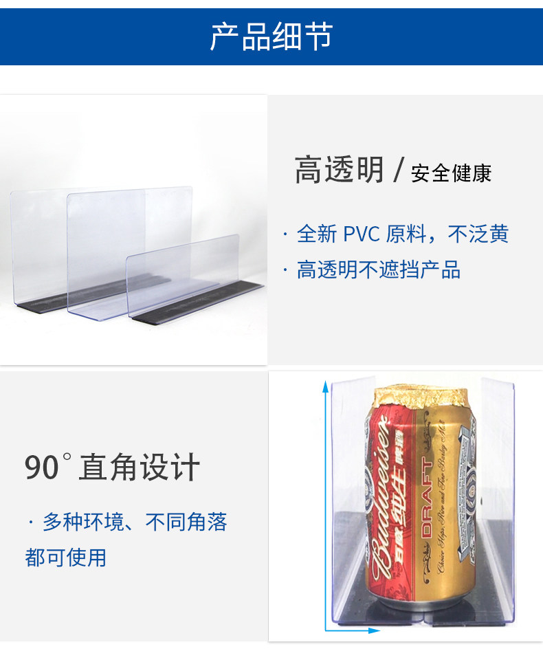 Супермаркет полки разделение барьеры панели панели панели панели магазина кулака из ПВХ сепараторы пластиковые L -обработанные малые товарные доски