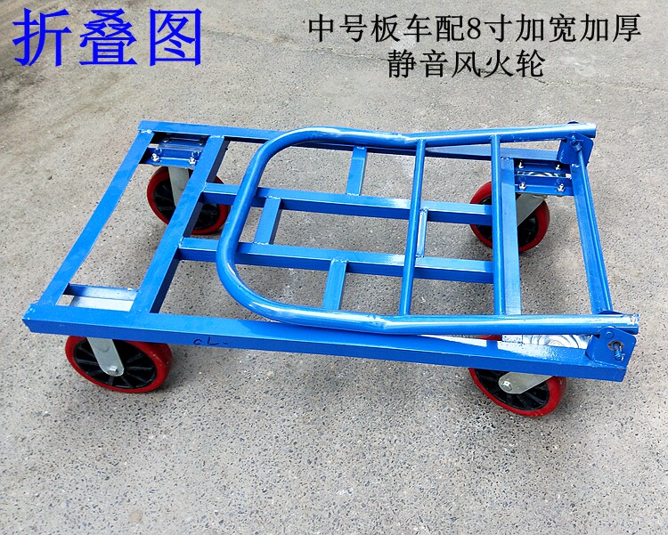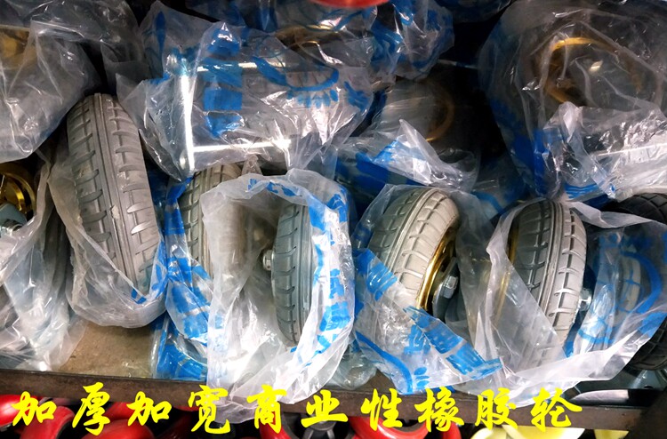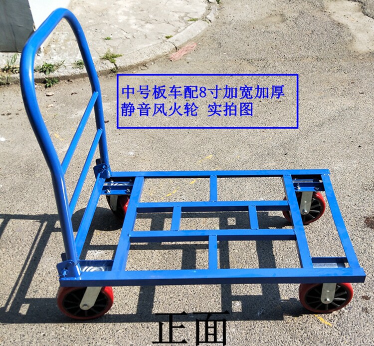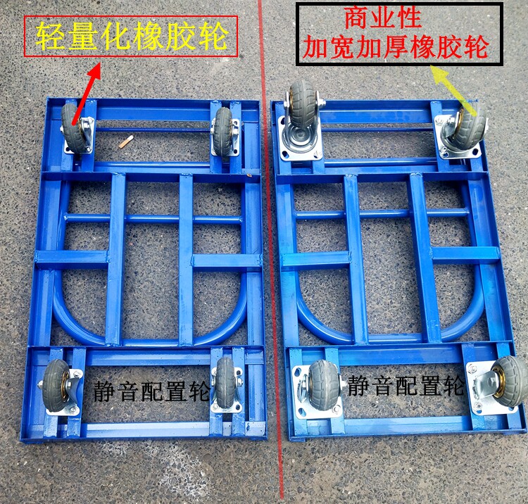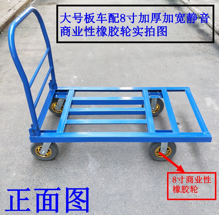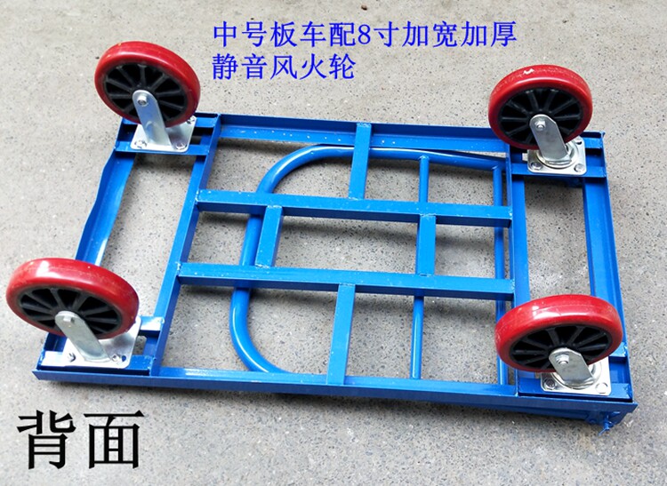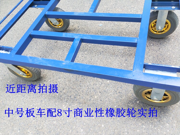 - Тележка для перевозки поддонов среднего размера, оснащенная 8-дюймовыми утолщенными и расширенными резиновыми колесами.