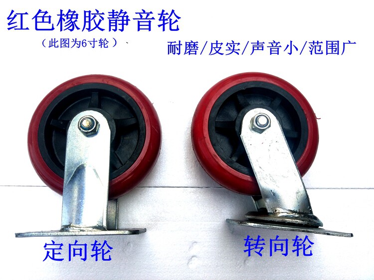 - Небольшая тележка с 6-дюймовыми расширенными бесшумными колесами красного цвета.