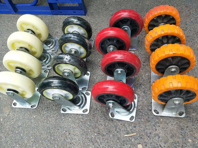 - Маленькая тележка с 4-дюймовыми красными бесшумными колесами.
