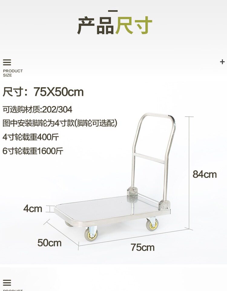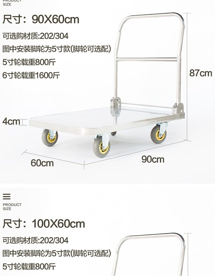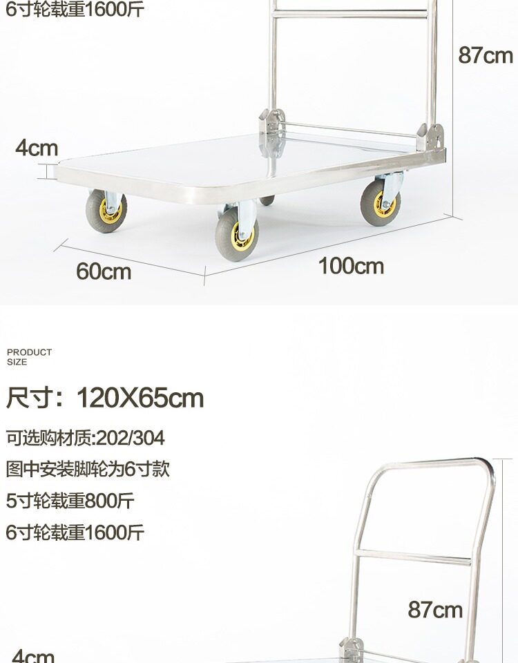 Тележка из нержавеющей стали, складной бортовой грузовик, увеличенная толщина