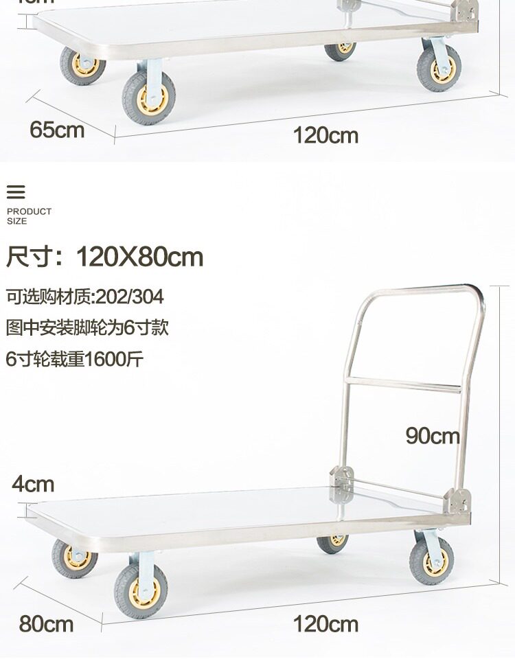 - Материал 304 120*80 с 6-дюймовыми эластичными колесами 1600 фунтов.
