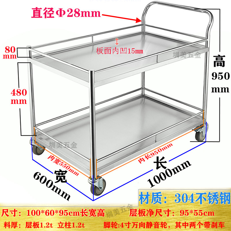 Двухэтажная тележка для экспериментов из нержавеющей стали для детского сада, вагон-ресторан